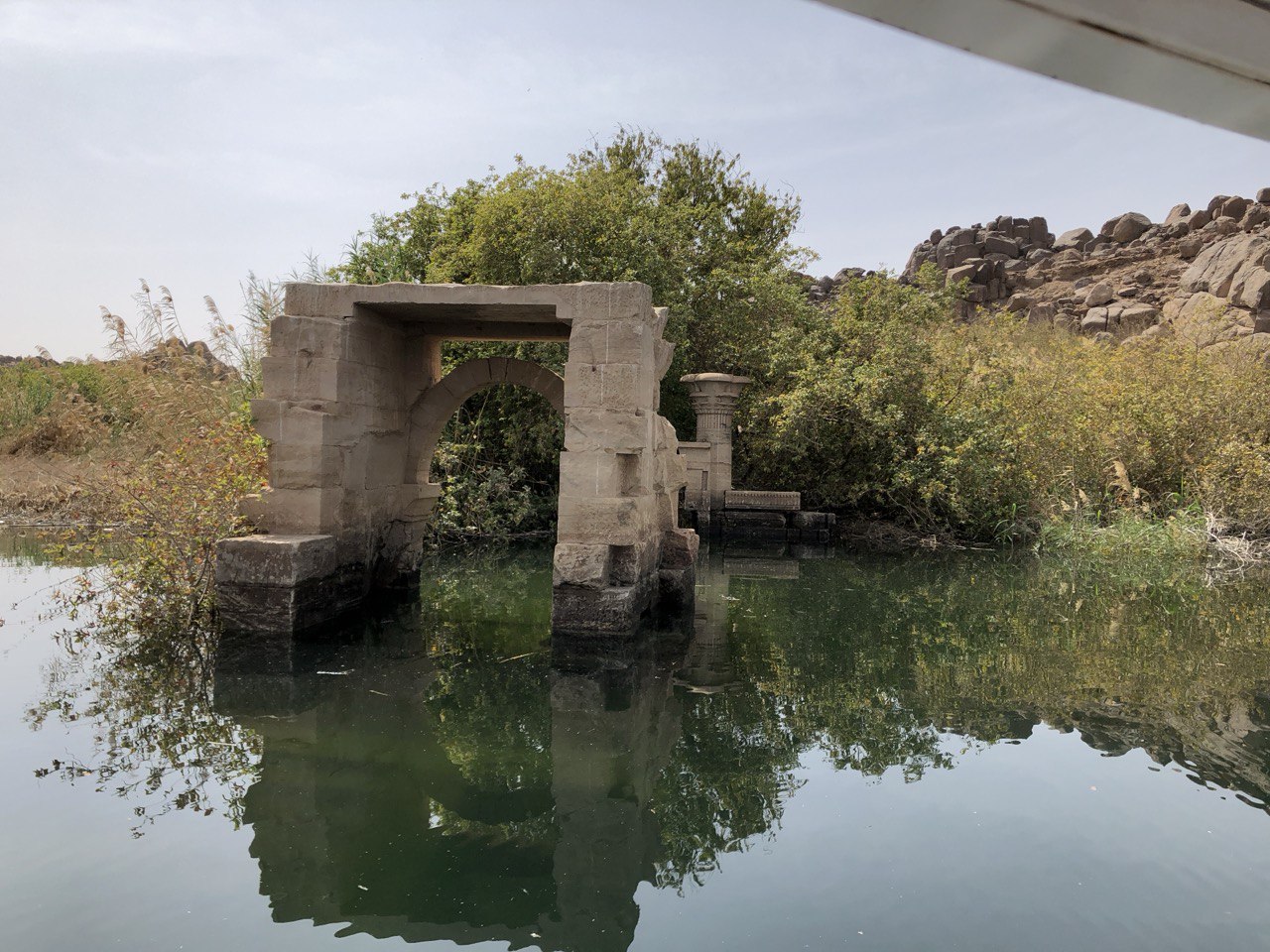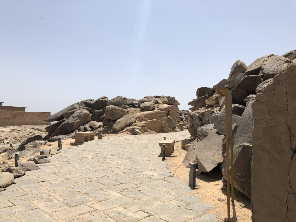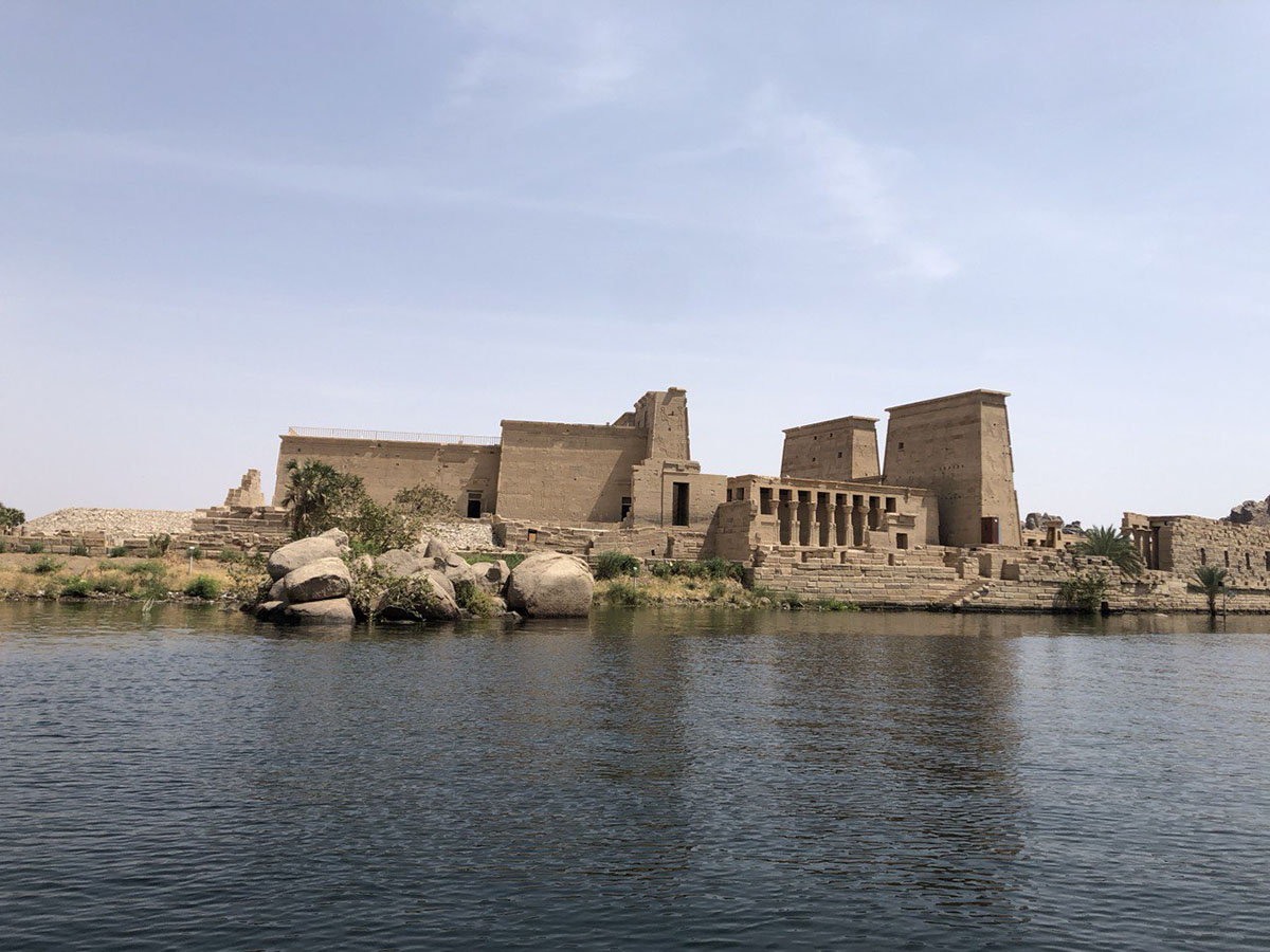 أما خلف السد العالي، فتقع جزيرة أخرى تضم العديد من المعابد المبهرة في تفاصيلها، والغنية بتاريخها ونقوشها المميزة، في تناغُمٍ مزج بين الإرث النوبي والمصري في آن واحد. تخطف نظرك تلك المجموعة المميزة من بعيد. فيمكنك أن تراها وأنت على مدخل السد العالي، لكنك لن تصل إليها إلا عبر مركب نيلي صغير، يأخذك عبر بحيرة السد العالي أو بحيرة التماسيح كما يسميها البعض، وستكون محظوظا بالتأكيد إذا كان المراكبي نوبيا. حيث يسرد لك تاريخ البحيرة قبل أن تتغير ملامحها وتاريخ أسرته وملاعب صباه قبل أن تغمرها مياه السد.