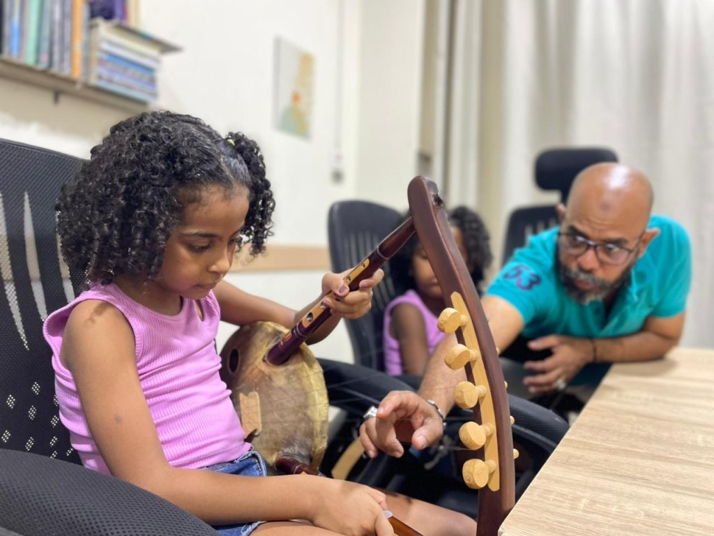 In Ras Ghareb, Amr Raawi has established a school teaching children to play the simsimiya within a private educational centre. Heba Hamed, the centre’s director, explains their mission: “We are trying to fill a gap in music education in the city, because public schools do not offer music classes, and neither does the official Culture Palace. So we started training courses targeting children to learn the simsimiya.”