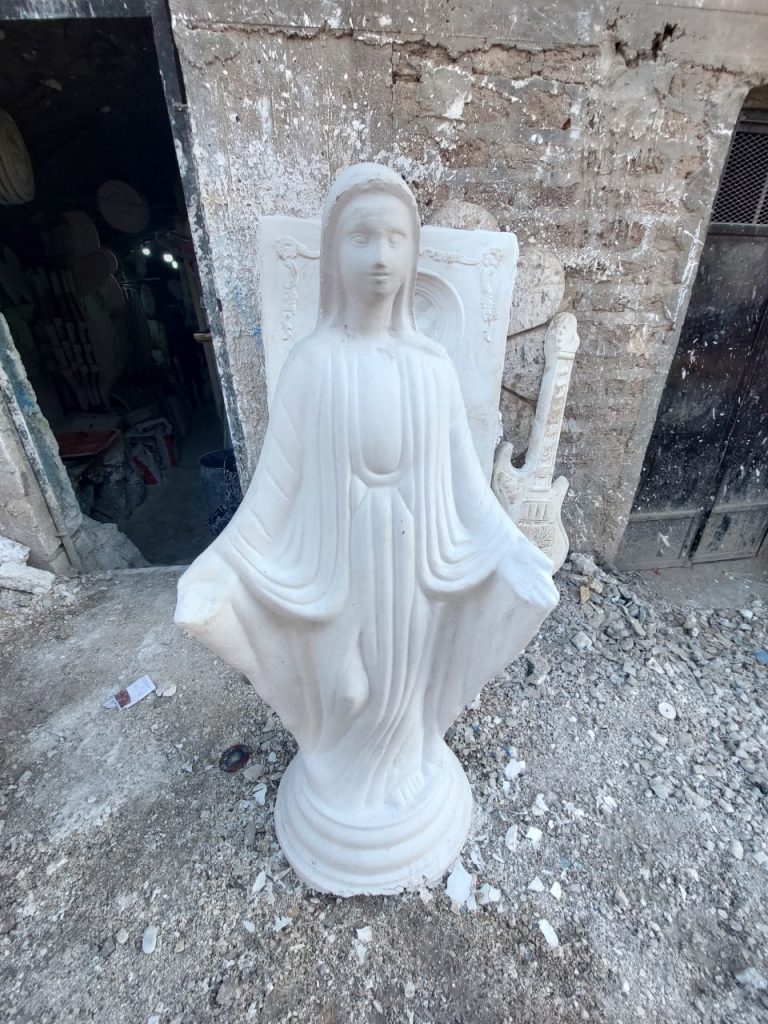 The workshop produces diverse offerings: Virgin Mary sculptures, Jesus Christ figures in various sizes, crowns of thorns, combined Virgin and Christ pieces, and statues of saints that Coptic Christians eagerly purchase. These pieces serve multiple purposes, adorning home interiors, church spaces, and even balconies during religious celebrations.