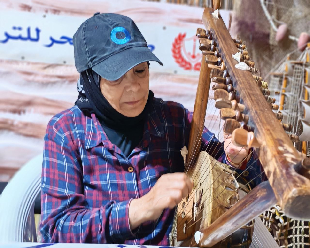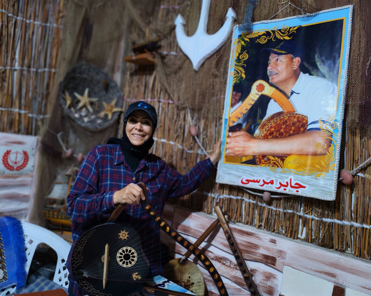 I am Fatma El-Morsy, the first woman to play the traditional Port Said simsimiyya, and leader of the “Voice of the Sea” Folk and Heritage Arts Ensemble. I belong to a distinguished artistic family. My father was El-Reis Morsy, one of the most prominent simsimiyya makers and the lyricist behind the instrument’s most famous songs in the Suez Canal cities.