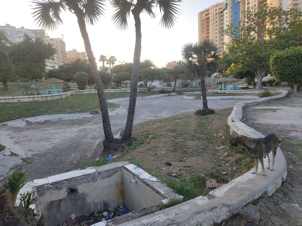 In 2016, social media erupted with images showing the neglect and poor care of Khalideen Garden. The parking garage beneath it had become a haven for lawbreakers. Development work subsequently began, and Alexandrians were shocked to find the green spaces completely removed from the garden. A collection of restaurants, cafes, and fast food outlets was established instead, transforming it into “Khalideen Mall” by 2017. What was once a rare public green space in the densely built coastal city became another commercial venue, eliminating free public access to nature in one of the few remaining open areas along Alexandria’s waterfront.