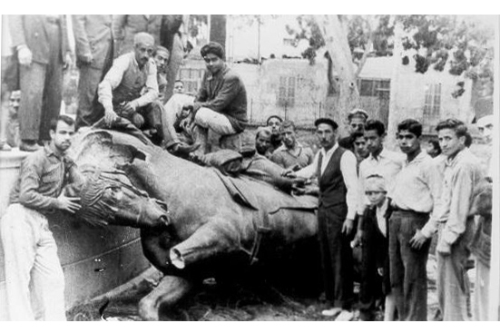 The statue remained standing in the Palace garden until the night of December 26, 1956, during the tripartite aggression against Egypt. A group of local youths attacked it with hammers and stones.