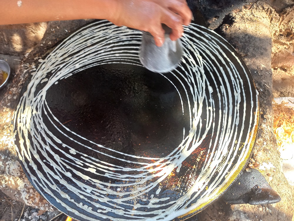 Some women, she notes, use a different method: mixing flour, water, and salt, letting the dough dry slightly, then cooking it over steam and adding sugar to eat at sunset.