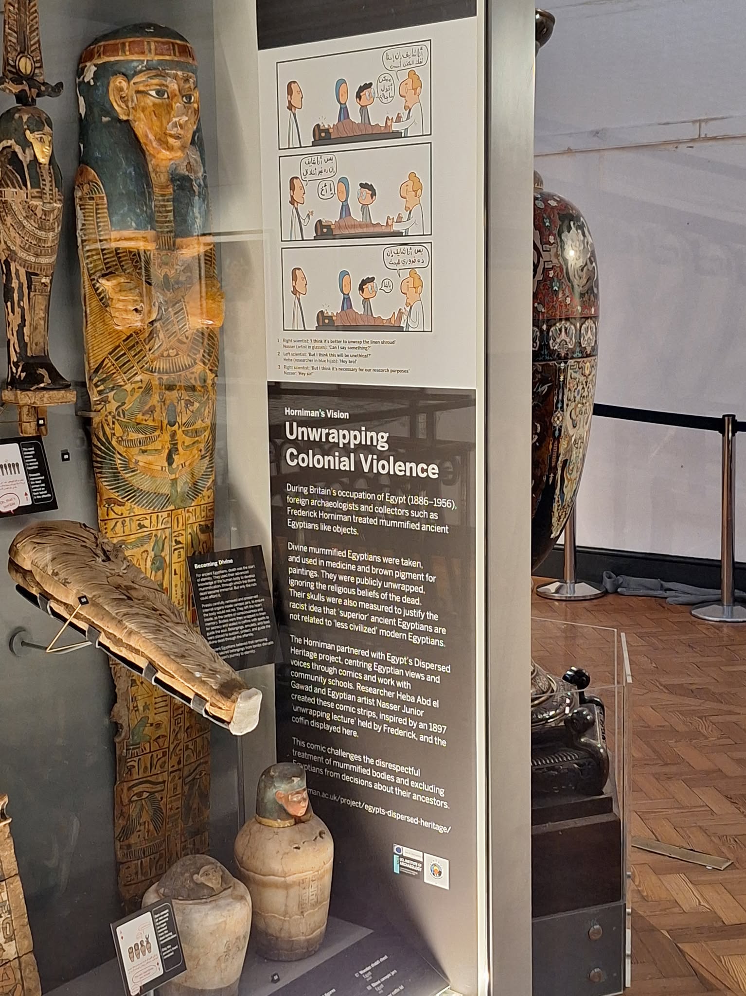 وقد فتح مشروع “آثارنا المتغربة” المجال أمام المتاحف البريطانية لإعادة النظر في طريقة عرض التراث المصري، وتغيير السردية السائدة. وأوضحت أن المشروع أتاح لمتحف هورنيمان تقديم صورة أكثر صدقا عن مصر. من خلال كوميكس يتناول موضوع البقايا البشرية، والطرق غير القانونية والمهينة التي خرجت بها تلك الأجساد من مصر.
