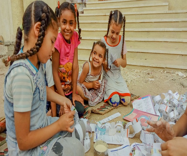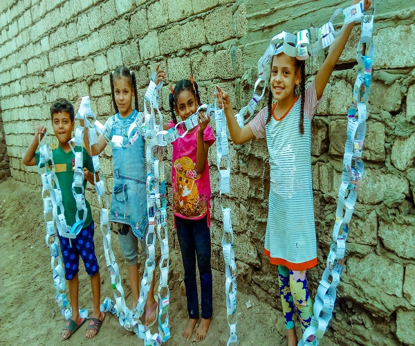 أطفال الصعيد يصنعون زينة رمضان، تستقبل قرى الصعيد شهر رمضان كغيرها من المدن بصنع الزينة وتعليقها على جدران المنازل وفي الشوارع.