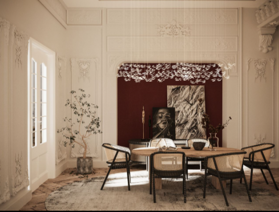 وعن طراز الطابق الذي عاش فيه، فضل أن يكون فرنسيا. واستعان بفؤاد باشا سراج الدين – السياسي ورجل الدولة – لاختيار أعمال الديكور والإشراف عليها، كما قالت د.لوتس.