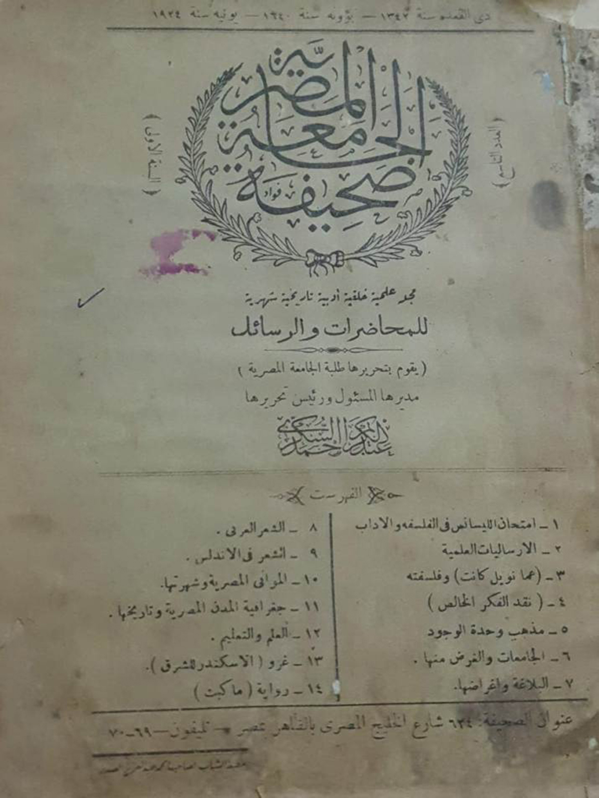 هكذا تحدث طه حسين، مدرس التاريخ القديم بالجامعة المصرية، في محاضرته عن الإسكندر الأكبر عام 1924م، ولا عجب في ذلك وهو المعروف عنه أنه أستاذ أدب اللغة العربية بكلية الآداب. فقد تتلمذ على أيدي كبار الأساتذة المصريين والأجانب وهو طالبًا بالجامعة المصرية، ونذكر منهم الأستاذ نالينو في تاريخ أدب اللغة العربية، والأستاذ حفني بك ناصف الشيخ محمد المهدي في آداب اللغة العربية، والأستاذ ميلوني في تاريخ الشرق القديم، وحصل على درجة الدكتوراه وكان موضوع بحثه “ذكرى أبي العلاء”.