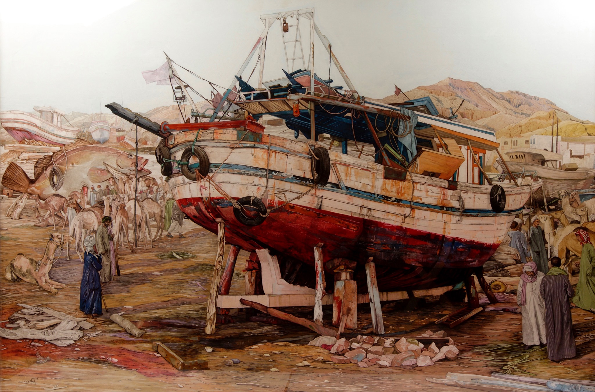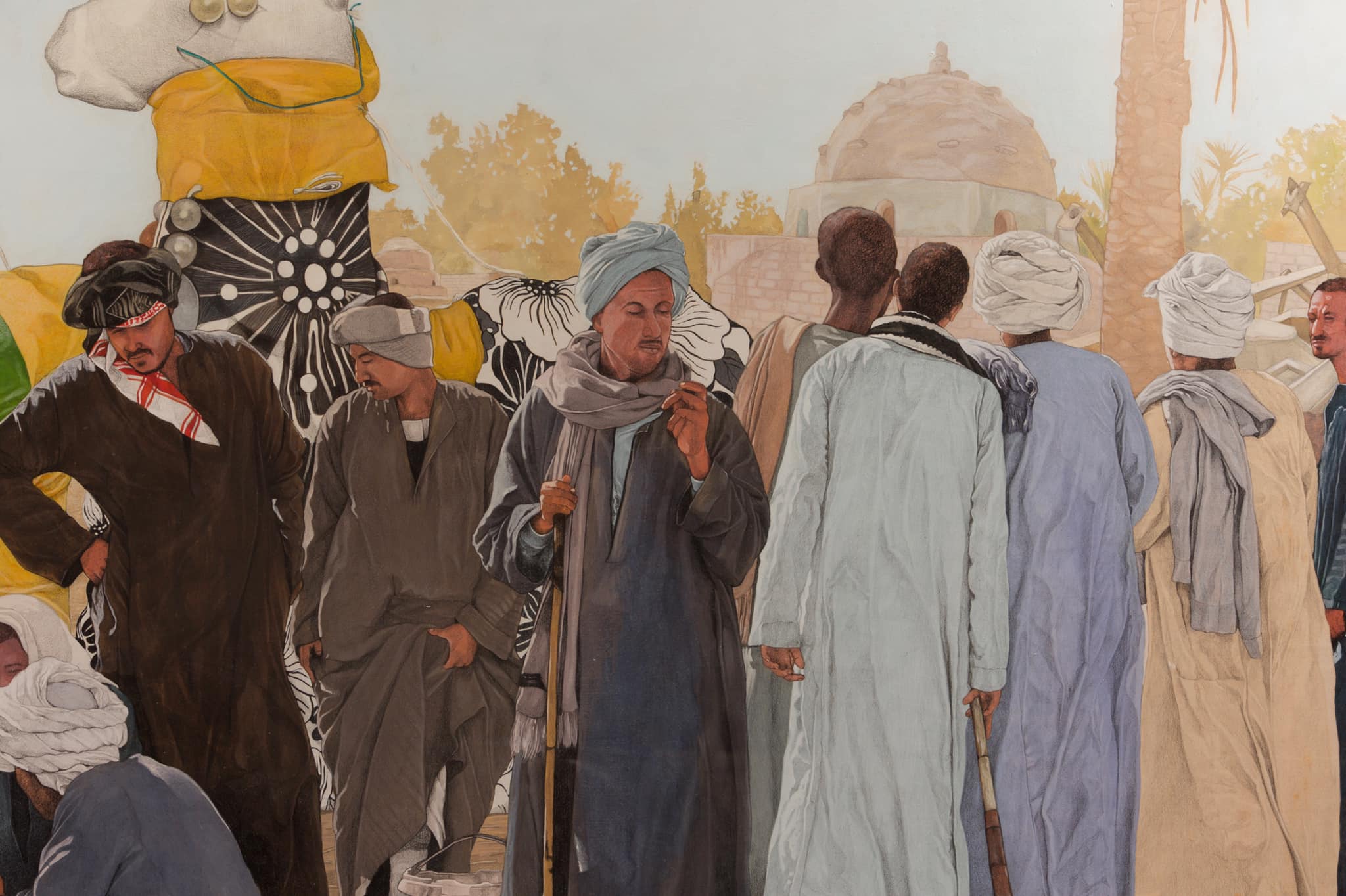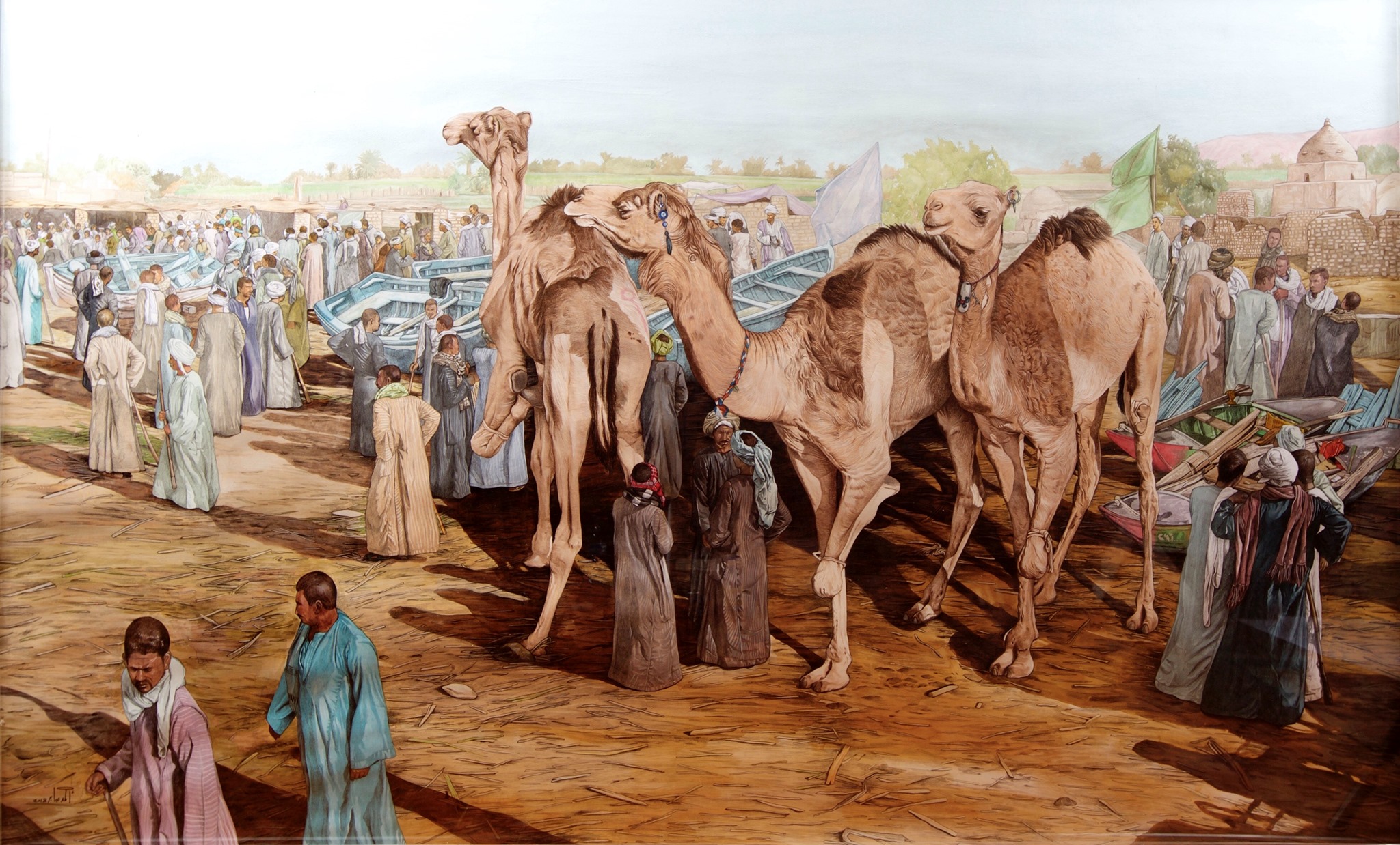أما شغل المولد وطقوسه في سوهاج والأقصر، فشكل تفكيرا خاصا لدي الفنان، إذ سعى لتوثيق كافة المظاهر والطقوس قبل أن تندثر، ويقول: سجلت ما يوجد الآن بالموالد مثل أشكال المراجيح، البائعين في المولد، الجمال والهودج، وهناك العديد من المظاهر التي لها جذور من الماضي خاصة الفرعوني مثل طقس المراكب الذي يتم في مولد أبوالحجاج.