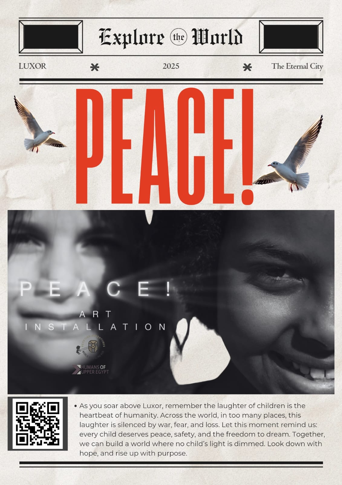 من قلب الصعيد، وعلى ارتفاعات البالون الطائر، تظهر لوحة فنية تعبر عن حلم مشترك بين الأطفال من مختلف أنحاء العالم «السلام». جدارية ملونة بأحلام بريئة ورسائل أمل، تعلو سهل الأقصر الشاسع، هنا تتلاقى الألوان والأحلام مع رسالة إنسانية تهدف إلى نشر السلام.