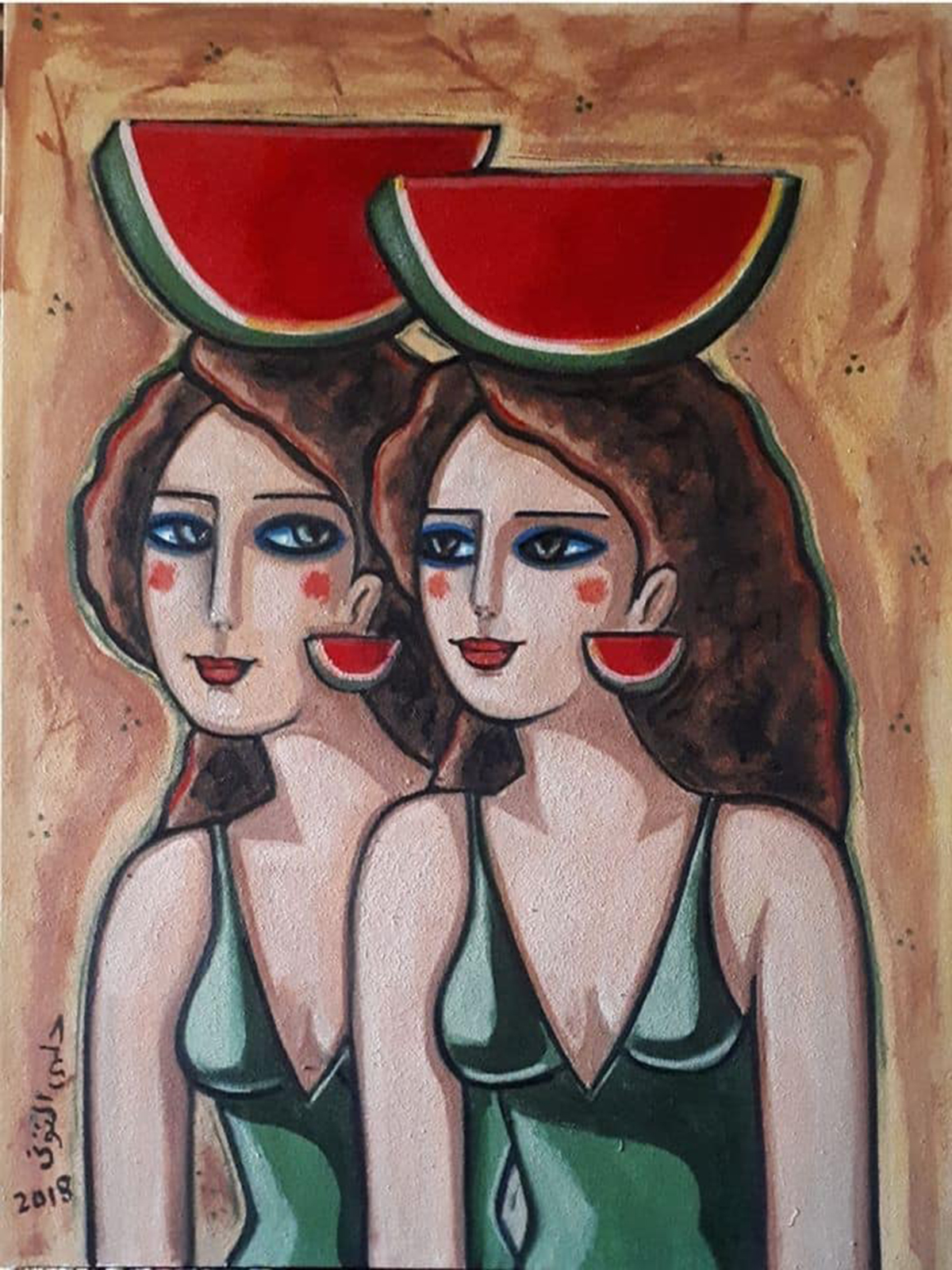 بطريقتها ومفرداتها، لخصت الفنانة دعاء العدل خلاصة من خلاصات فن التوني البصرية. إذ نعت الفنان الكبير الراحل في لوحة رسمتها مستعيدة موتيفات شهيرة في أعمال التوني. تبرز في لوحة دعاء العدل فتاة في فستان أحمر زاهٍ، وهي نسخة من لوحة شهيرة للتوني، لكن مرسومة بوجه يميل بنظرته إلى قلب اللوحة. من زاوية ثلاثة أرباع الوجه كما يقول الفنانون بالفرنسية (تروا كار)، لا بوجه يواجه المتفرج تماما، بجماليات التسطيح الشرقية التي تبتعد عن الإيحاء بالبعد الثالث المجسم. وهي الجماليات التي ألمسها في لوحة التوني الأصلية التي تصور الفتاة نفسها. تلك الفتاة الشهيرة عيونها فرعونية مكحولة برسم حورس وتحمل سمكة على رأسها.