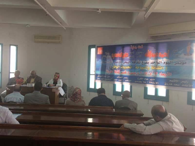 عقد فرع ثقافة البحر الأحمر، اليوم الأربعاء، مؤتمر اليوم الواحد، تحت عنوان “الثقافة والسياحة وتحديات الواقع”، وفى كلمته أكد الدكتور أيوب حسين، رئيس المؤتمر، على دور المؤسسات الحكومية والسياحية والثقافية والتعليمية فى التأكيد على أغراض السياحة الثقافية التى تؤدى دورا هاما فى تثقيف الشباب وتكشف عن إبداعاتهم.