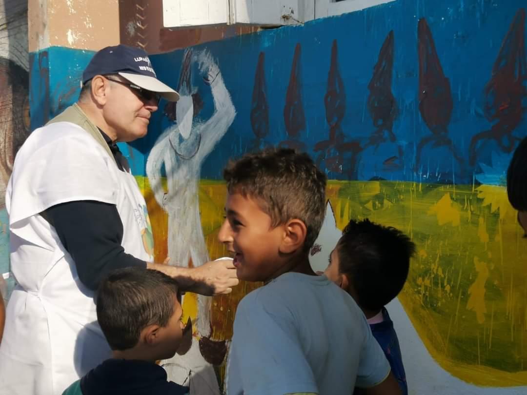 بينما في هذه الدورة رسمت على الحائط الباليتشو والأراجوز، لأن الرسم على الحوائط له طابع خاص ولابد أن يكون مبهجًا يجذب أنظار المارة في الشارع، ويبث فيهم السعادة، والطاقة والإيجابية. وأكثر ما أسعدني ولفت انتباهي، سعادة أطفال القرية ومتابعتهم لنا، فور خروجهم من المدرسة يهرعون إلينا ليروا ماذا أضفنا جديد على الحائط. حيث يحاط الفنان بما يقرب من 40 طفلا من 3 سنوات لما فوق ينظرون بسعادة ولهفة.