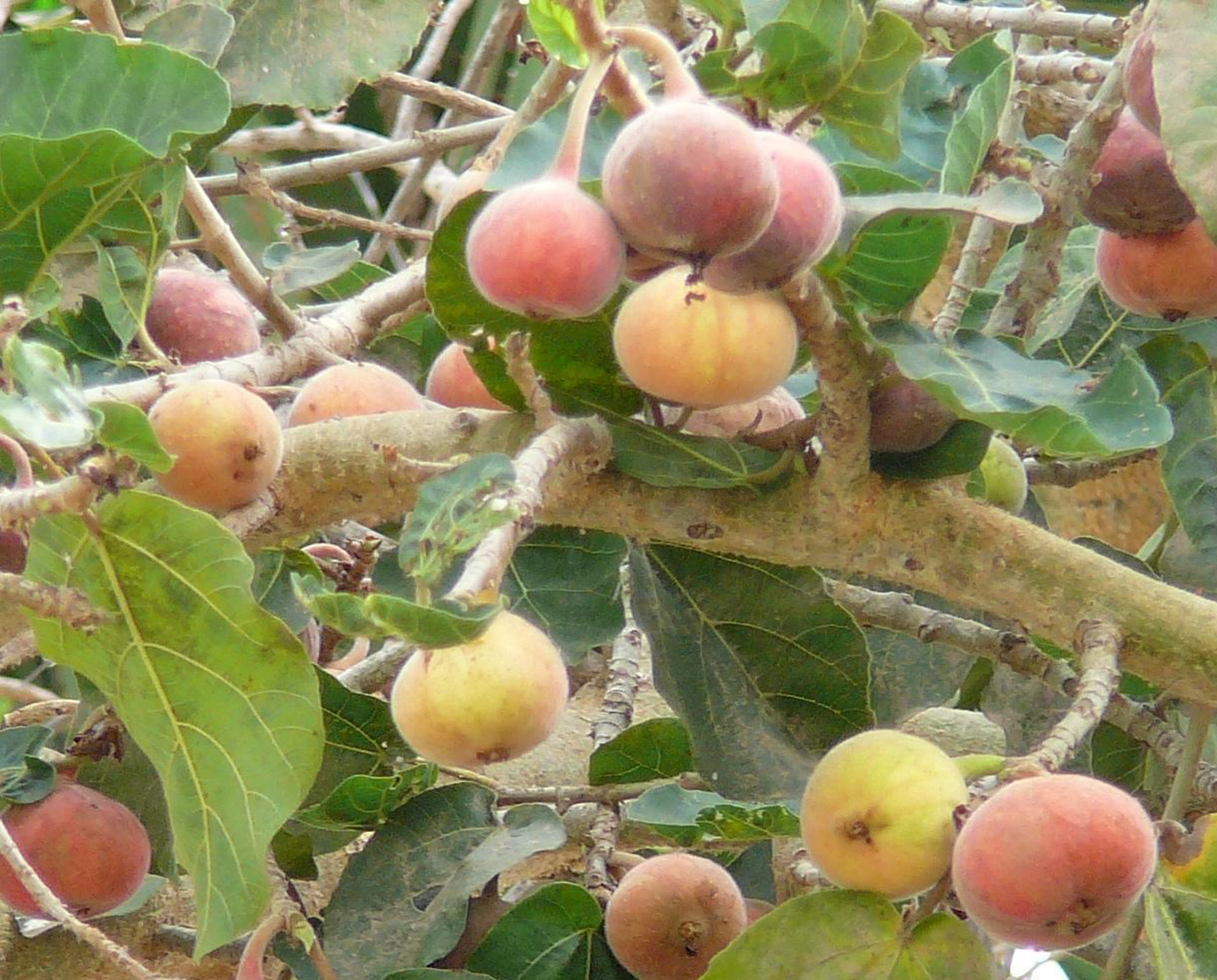 شجرة دائمة الخضرة (نفضية في الشتاء القارص) من الفصيلة التوتية. يصل ارتفاعها إلى 25 مترًا، والأشجار القديمة منها ذات جذع ضخم يبلغ قطره أكثر من مترين، ويغطيها لحاء أصفر مخضر. الأوراق كبيرة، بيضاوية الشكل، جلدية، وخشنة الملمس. الثمار تينية تشبه ثمرة التين ولكنها أصغر حجما، وردية اللون عند النضج، وتوجد على الأفرع أو الجذوع القديمة.