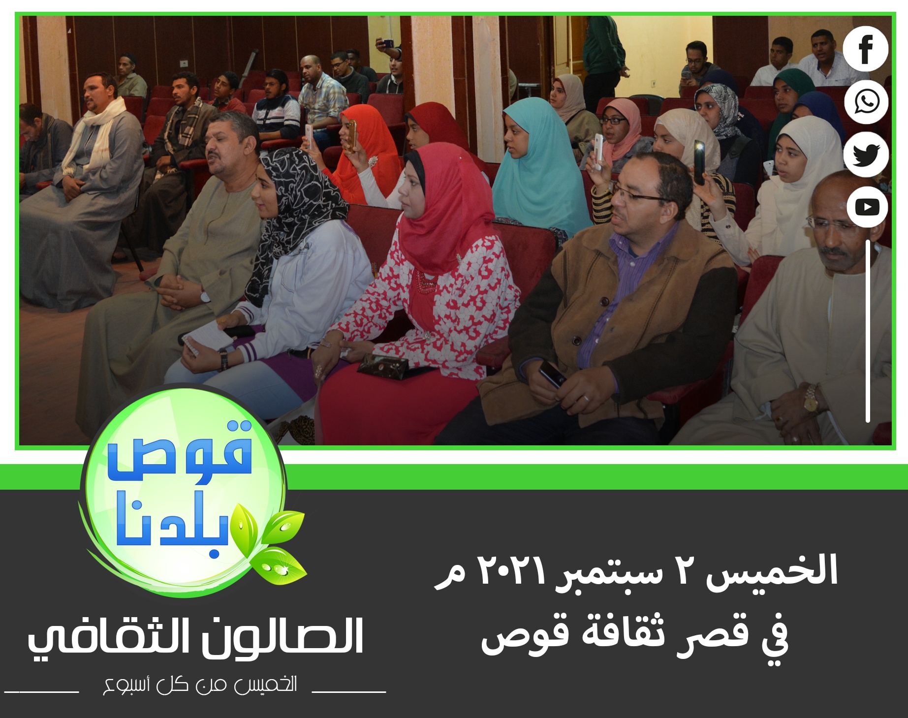 ومن جانبه قال أحمد رجب، المنسق العام لمجموعة قوص بلدنا بدأت المجموعة بالصالون الثقافي الذي احتضنه قصر ثقافة قوص، بقيادة أنور جمال، مدير قصر ثقافة قوص آنذاك، ومدير عام فرع ثقافة قنا حاليًا، مع استكمال الأنشطة بدعم من أحمد جابر، مدير قصر ثقافة قوص يوم الخميس من كل أسبوع، ينظمه مجموعة من الشباب، ويحضره لفيف من الجمهور ويضم أنشطة ثقافية وفنية متنوعة من عرض مسرحيات ومسرح عرائس ومواهب الشعر والقصة القصيرة، وغيرها.