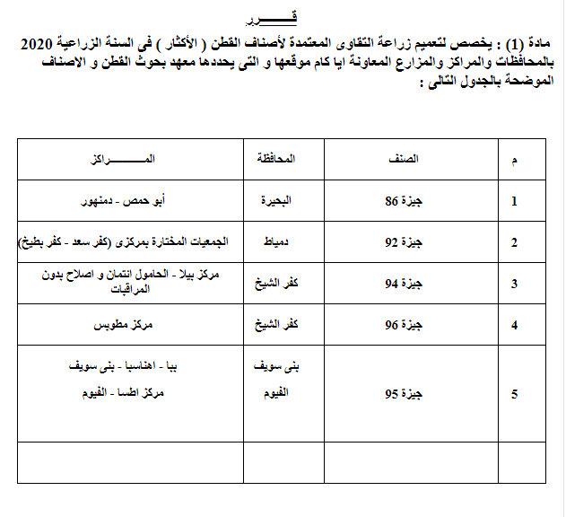اندثرت تلك الأنواع من القطن، التي كانت تزرع في مصر وبقيت الأنواع الموجودة حاليا التي أقرتها وزارة الزراعة.
