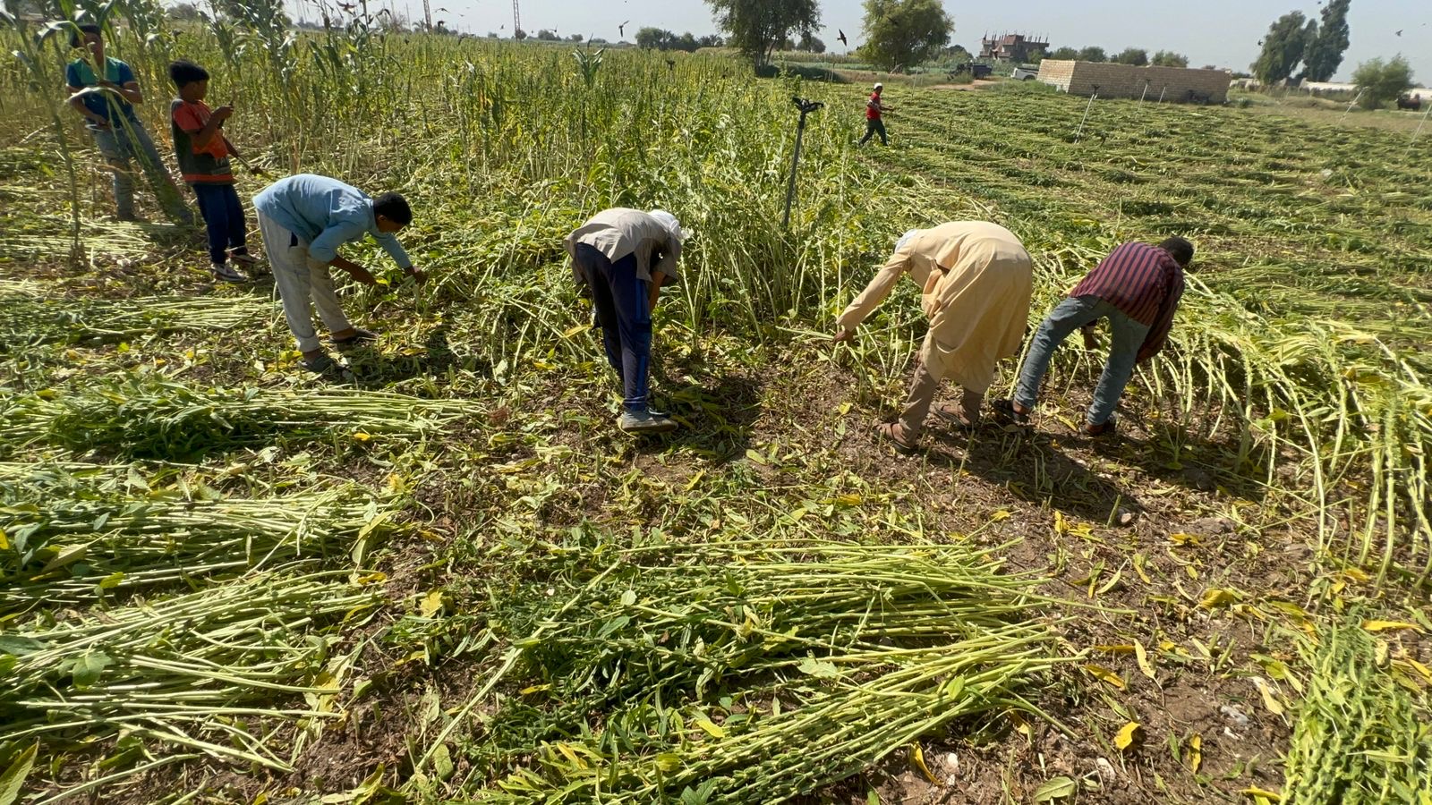 ويقول: “السمسم من المحاصيل التي تحتاج إلى اهتمام كبير من المزارعين، منذ البداية، من بداية تسميد الأرض والوقاية حتى الحصاد. ولا يتم الحصاد إلا بواسطة عمال ذوي خبرة. حيث نقوم بتقطيع العيدان ثم جمعها في حزم على هيئة عرائس في مواجهة أشعة الشمس لمدة تصل إلى 3 أسابيع حتى تجف تماما، وبعدها تأتي عملية الدراس”.