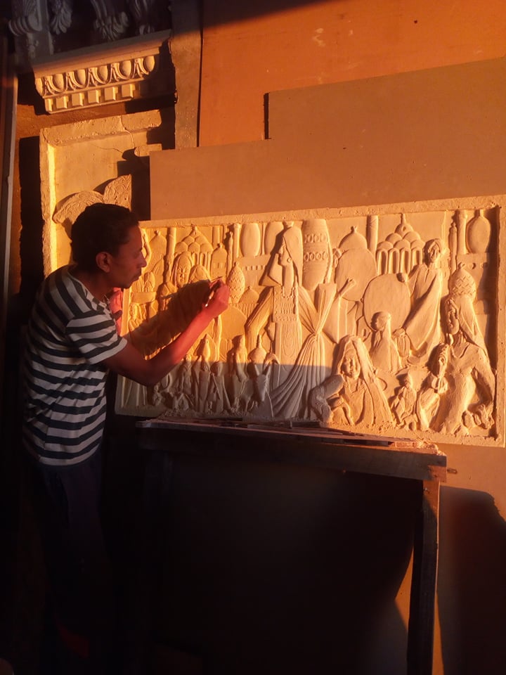 نحات بالفطرة يعيد جداريات الفراعنة للمنازل المصرية