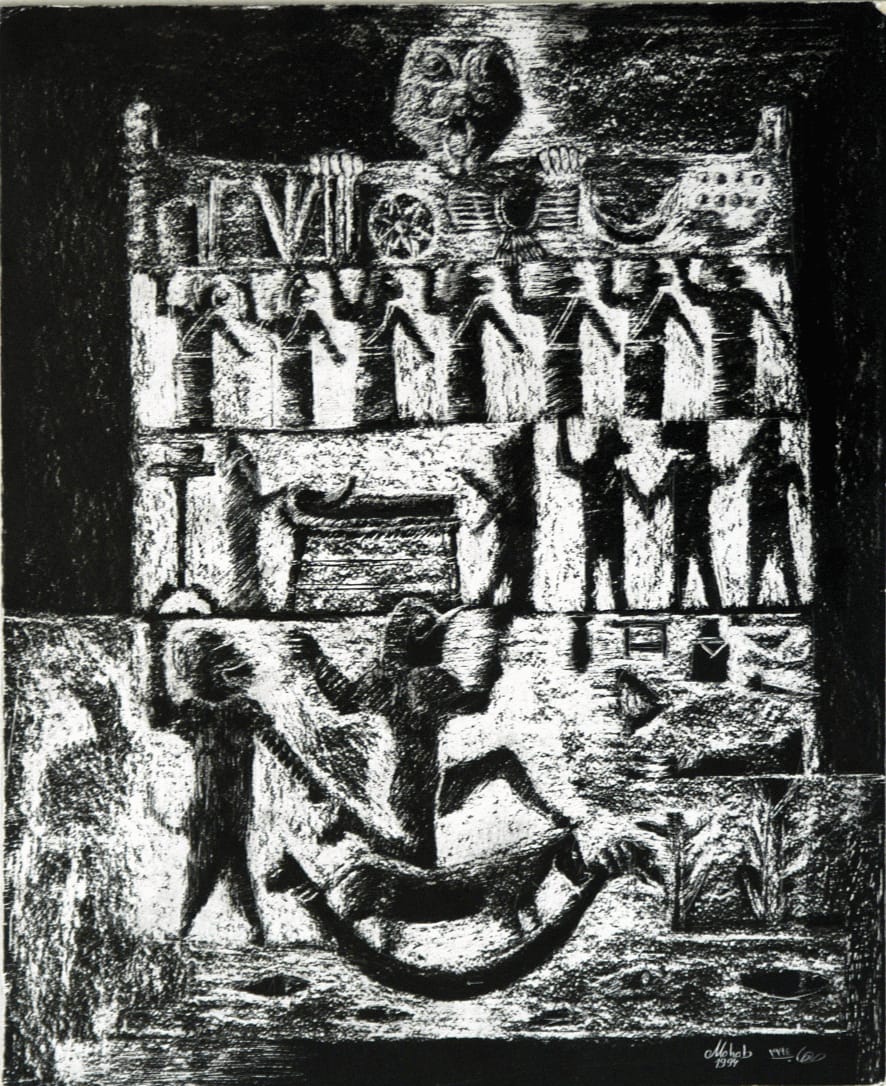 يضيف، بعد دراستي للفنون الجميلة واستكمال الماجستير والدكتوراه في نفس المجال استحضرت بداخلي كل هذه المفردات والأساطير والحكايات، واستطعت دمجهم داخل أعمالي الفنية المتنوعة على أسطح القوالب الخشبية المحفورة. بواسطة أزاميل الحفر وعرضها في نسخ طباعية، سواء بالأبيض والأسود أو بالألوان، محملة بداخلها الكثير من شحنات وانفعالات متوارثة ومعبرة عن تراث البيئة الخصبة. والتي لا تنضب أبدا من الاستلهام منها كطبيعة أي بيئة مصرية أصيلة.