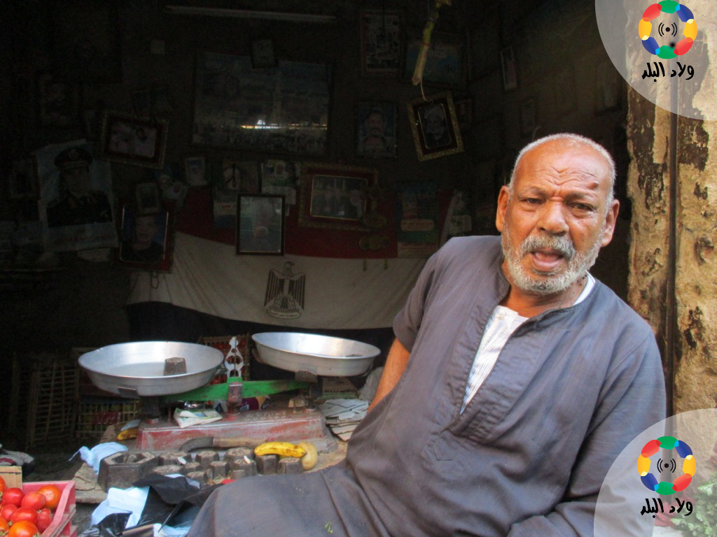 في شارع التحرير، وتحديدا خلف مبنى المطحن بمدينة نجع حمادي، شمالي محافظة قنا، يلفت انتباهك رجل مسن بسيط؛ يجلس محاطا بألون عدة من الفاكهة والخضراوات أمام “دكانته” الصغيرة، التي تستطيع أن تطلق عليها جدارية فنية، من كثرة الصور والبراويز المتنوعة ما بين القديمة والحديثة المعلقة على جدرانه، في كل اتجاه، لتطاردك تساؤلات عديدة ما هذه الصور؟ وما قصة هذا الرجل؟