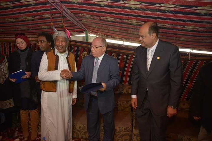 وفي ختام فعاليات الافتتاح تبادل الوزير والمحافظ درعي المحافظة والوزارة، وقام الوزير بإهداء درع الهيئة للشيخ عبد المنعم صابر حامد شيخ قرية القصر، وشهادة تقدير للفنان حسن حسين، وشاهد الجميع استعراضا لسباق الخيول.