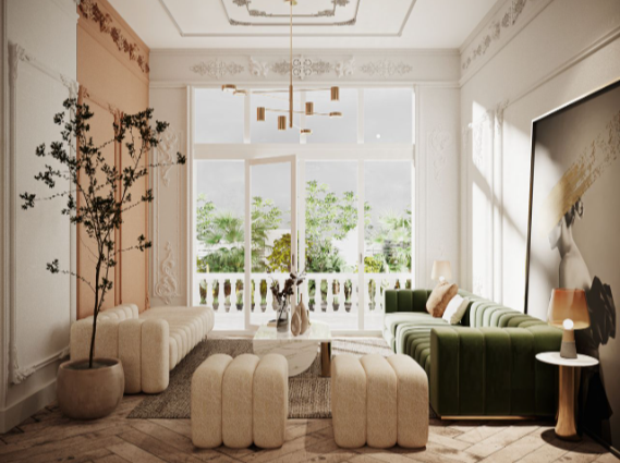 وعن طراز الطابق الذي عاش فيه، فضل أن يكون فرنسيا. واستعان بفؤاد باشا سراج الدين – السياسي ورجل الدولة – لاختيار أعمال الديكور والإشراف عليها، كما قالت د.لوتس.