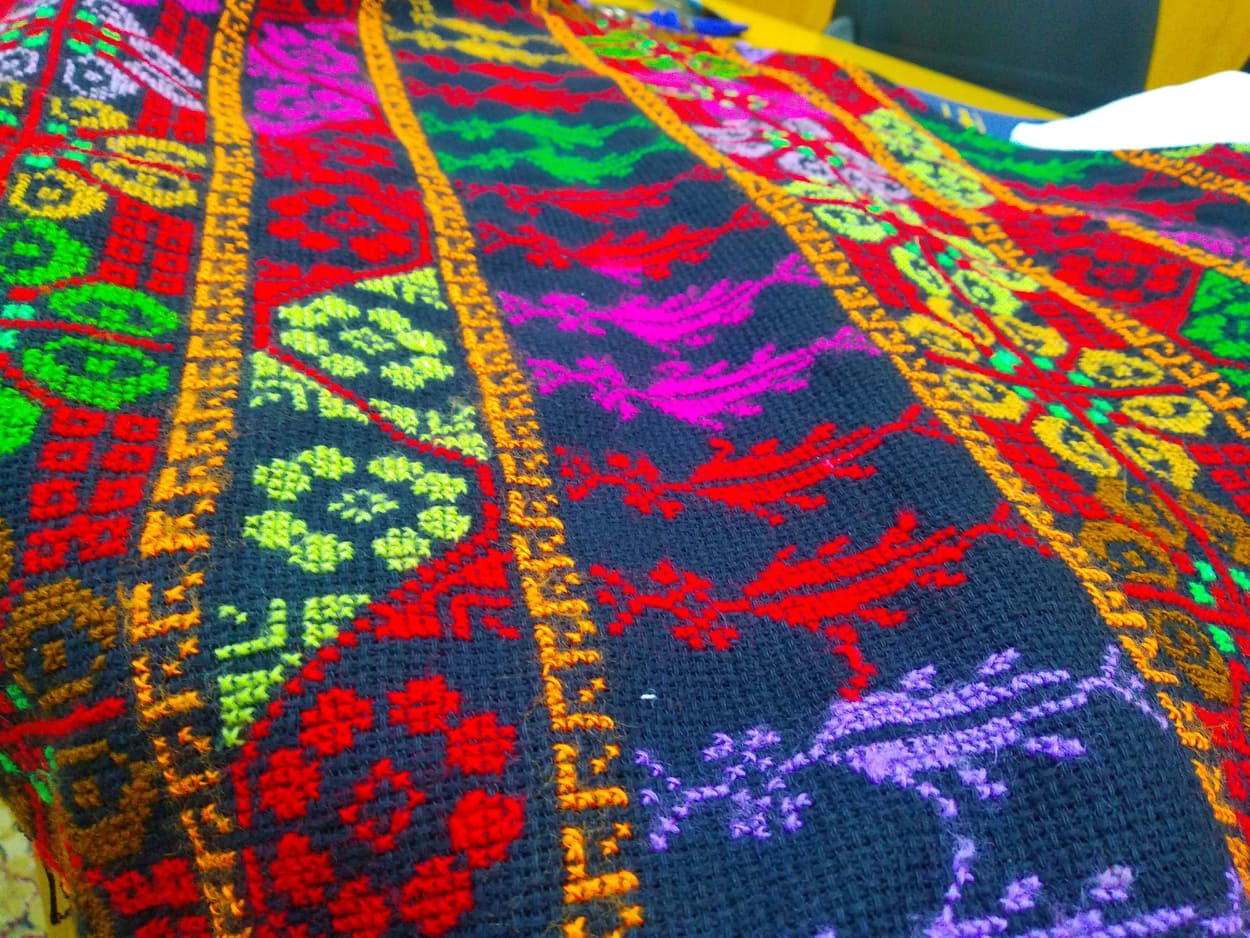 وتتابع: يضم ثوب الزفاف كافة الألوان والتصميمات التي تتعلمها الفتاة، ولا يترك فيه مكان خال يظهر القماش الأسود من تحته، إلا موضع الحزام فقط، أما باقي الفستان فهو يمتلئ بتصميمات وزخارف وألوان في كل قطعة نسيج، وتحرص الفتيات أن يكون سرًا لا يراه غيرها، وتلبسه الفتاة يوم زفافها، وبعد ذلك يمكنها أن تلبسه في حفلات الزفاف الأخرى أو في الأعياد والمناسبات الاجتماعية المختلفة، إلى أن تنجب طفلها الأول هنا يجب أن تتخلى الفتاة عن فستان زفافها وتحتفظ به لكن لا ترتديه بعد ذلك، فقد أصبحت أم.