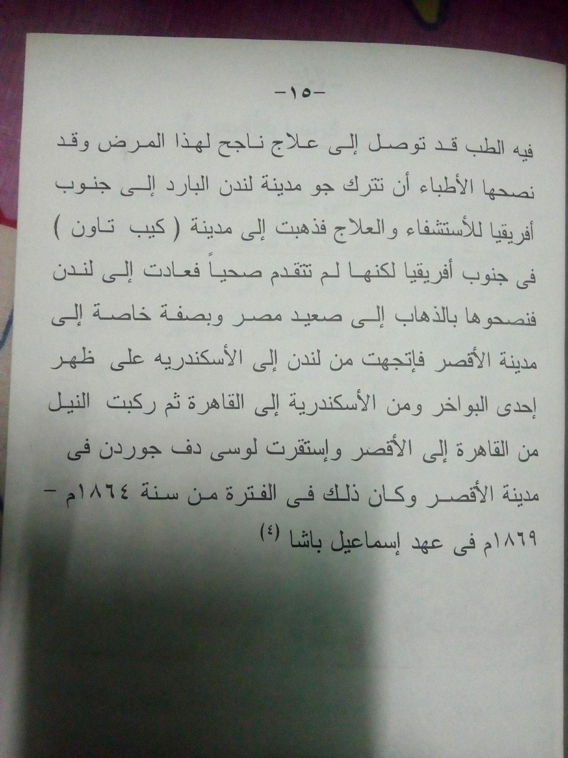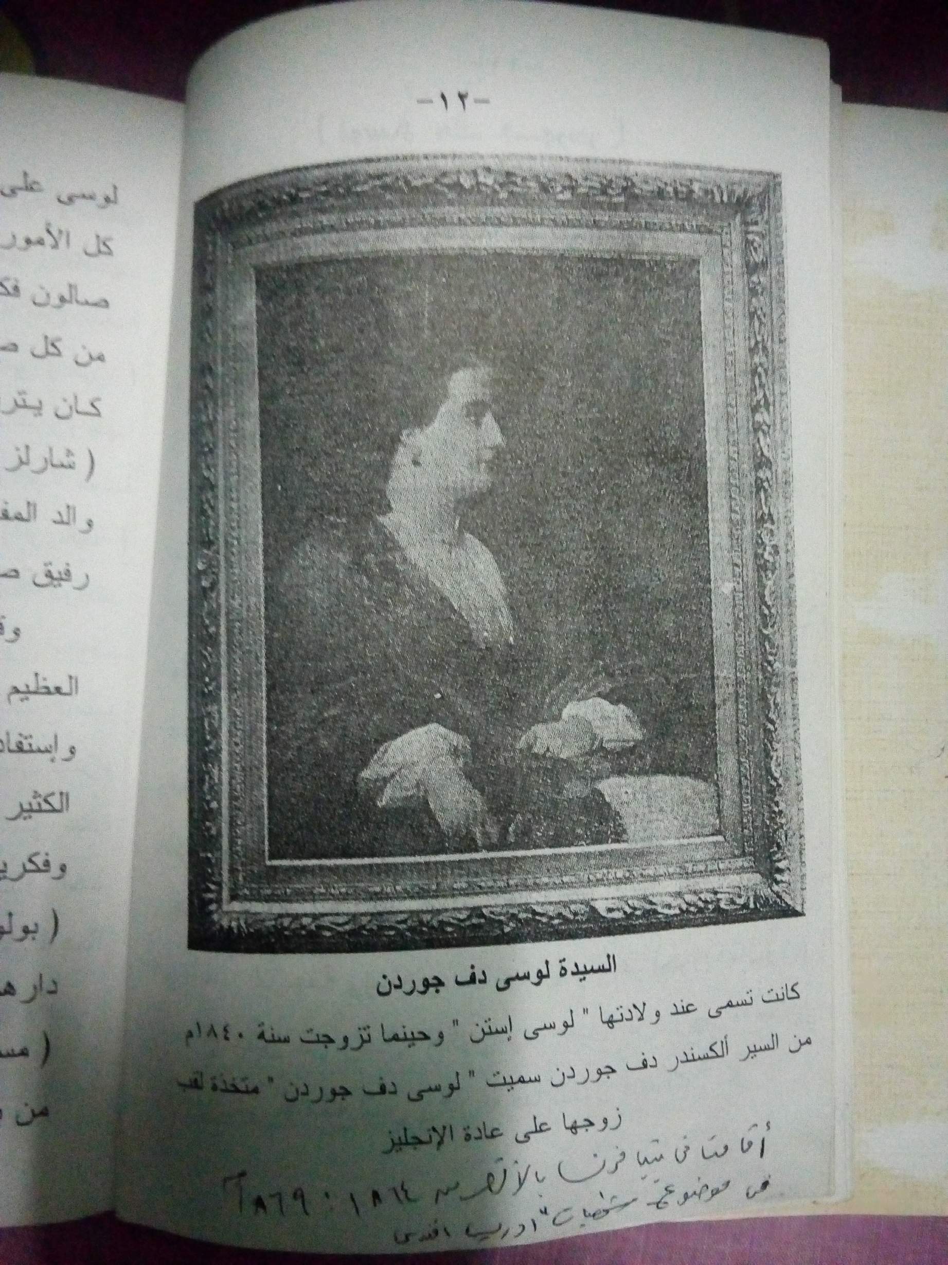 ويضيف عبدالجواد نقلا عن “كتاب صفحات من تاريخ الأقصر في عصر إسماعيل باشا من إعداد محمد عبده الحجاجي”، الذي نقله بتصرف من كتاب رسائل من مصر، لليدي لوس دف جوردن، أن الليدي لوسي دف جوردن إنجليزية الأصل، ولدت في لندن عام 1821، وتربت بين أحضان أسرة أرستقراطية، كانت تسمى عند ولادتها لوسي استن.