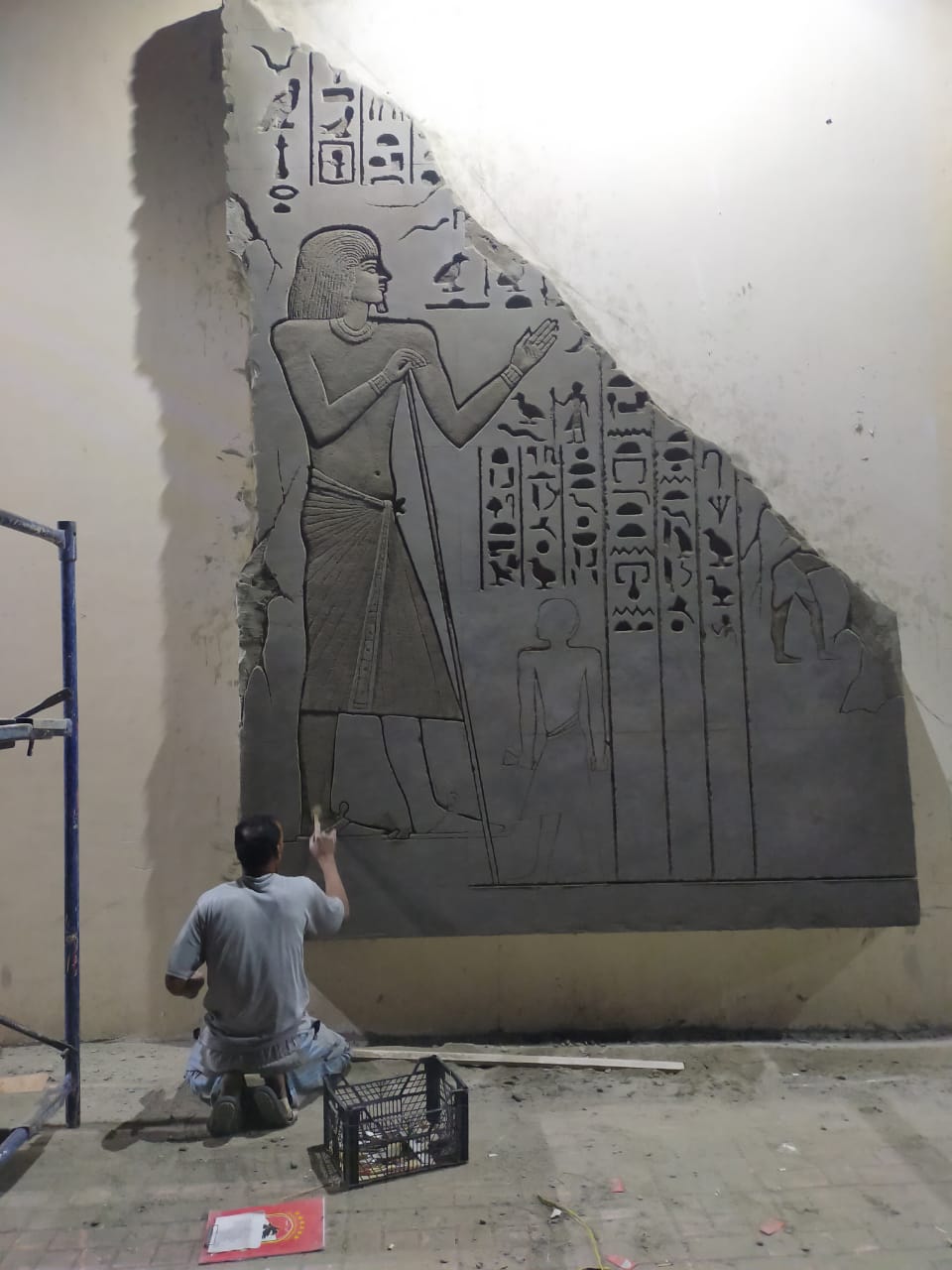بارتفاع 6 أمتار وطول 106 أمتار أيضا، صمم «عبده الجبلاوي» جدارية المعنّا الفرعونية، التي تحوى العديد من الرسومات والأشكال الفرعونية والقطع النحتية التي تعكس عظمة الحضارة المصرية، في مبادرة لتجميل وتزيين منطقة الكوبري الجديد بمحافظة قنا، بالإضافة إلى تنفيذ ممشى بطول الجدارية..«باب مصر» يلتقي مصمم الجدارية.