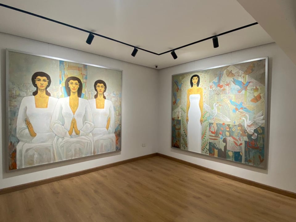 ويضم المعرض 20 لوحة فنية، أغلبها فتاة تشكل العنصر الرئيسي للوحة، فملامحها مصرية خالصة، تم ربطها بخلفيات فرعونية مثل القرابين والتضرع والطيور وغيرها، ويظهر في معرضي هذا التأثر بالفن الفرعوني من حيث المساحات والخطوط والألوان وخاصة اللون الأبيض الذي كان يعشقه المصري القديم و يوجد بكثرة في الصعيد فهو لون مهم للرجال والنساء، واستخدم في لوحاتي الألوان الزيتية على خامة التوال، واستخدم الفرش والسكاكين في توزيع الألوان، والتي غالبا ما تكون قريبة من ألوان رسومات المعابد القديمة مثل الرماديات والأبيض.