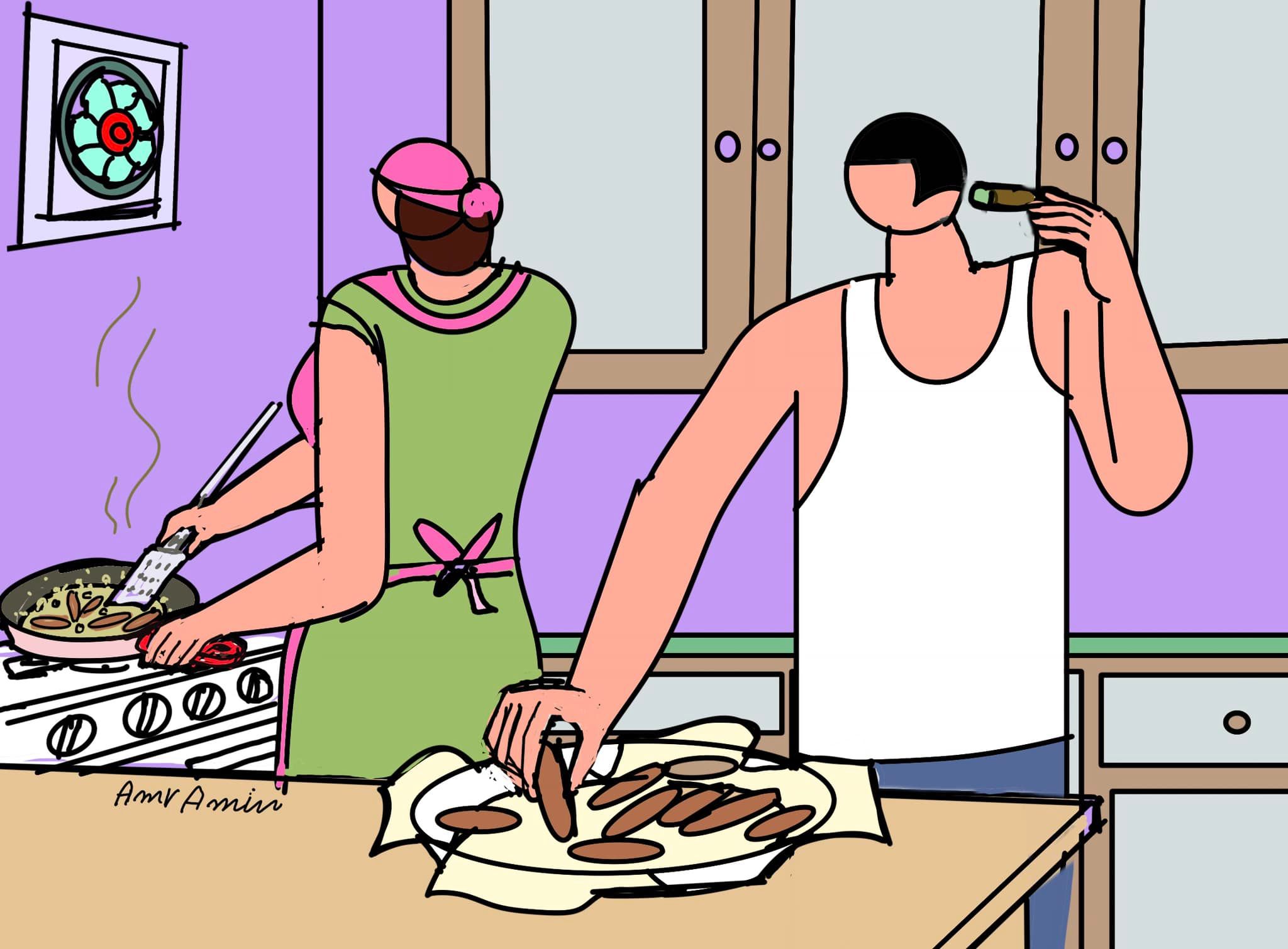 يكمل أمين: العلاقة بين الرجل والمرأة دائما متجددة وثرية للغاية. وأنا منذ ما يقرب من العامين ونصف العام وبشكل يومي ارسم وأسجل تلك اللوحات. دون أن تنضب الأفكار فهي أمام عيني وأراها بشكل يومي. من خلال الحياة العادية في المنزل في الشارع. أو من خلال التعليقات على المنشورات. وذلك لأن هناك الكثير يمكن مناقشته من خلال الزوج والزوجة أو الرجل والمرأة، بالإضافة إلى ما لدي كفنان من مخزون بصري.