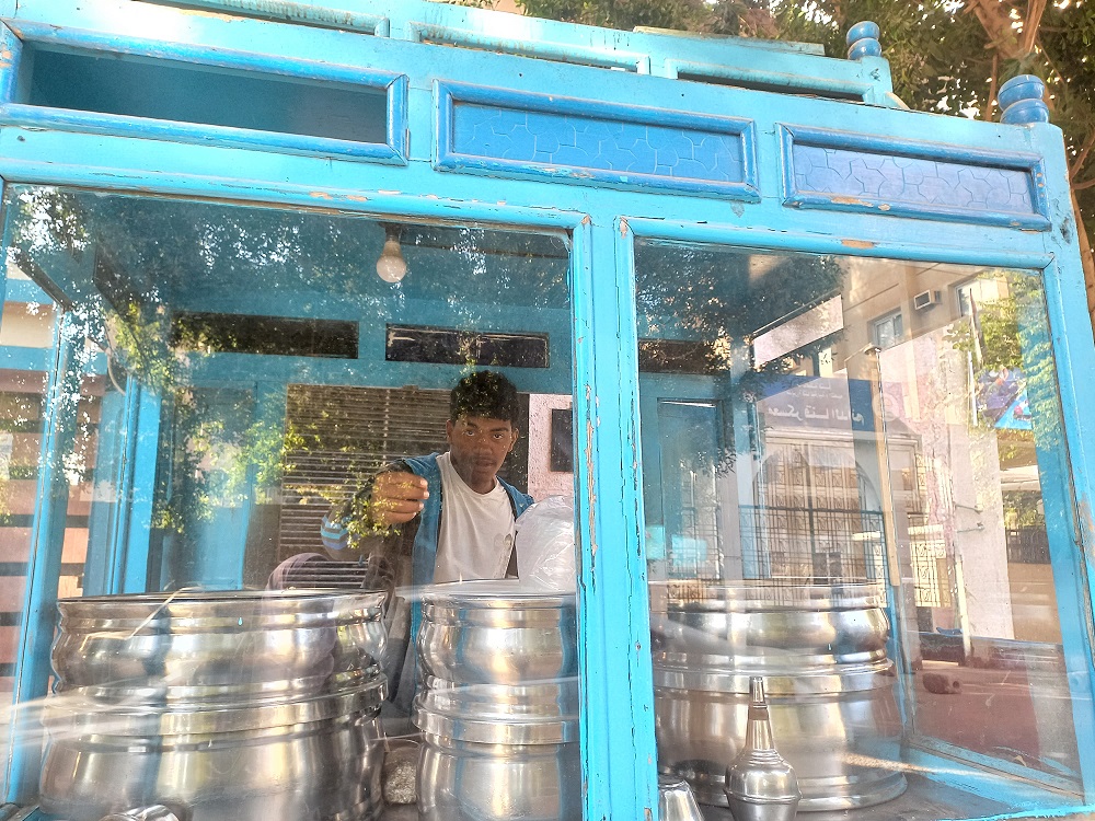 في مكان آخر من شوارع المدينة، وتحديدا بمنطقة عمر أفندي، إحدى أقدم مناطق قنا. يجلس الشاب مصطفى أبو عبدالله بعربته المخصصة لبيع الكشري، بعد أن ورث المهنة عن والده وأخيه الأكبر. وتزين عربته عبارات مكتوبة بخط جميل، منها: “عايزة صبر”، و”الله المستعان”، و”الله غالب”.