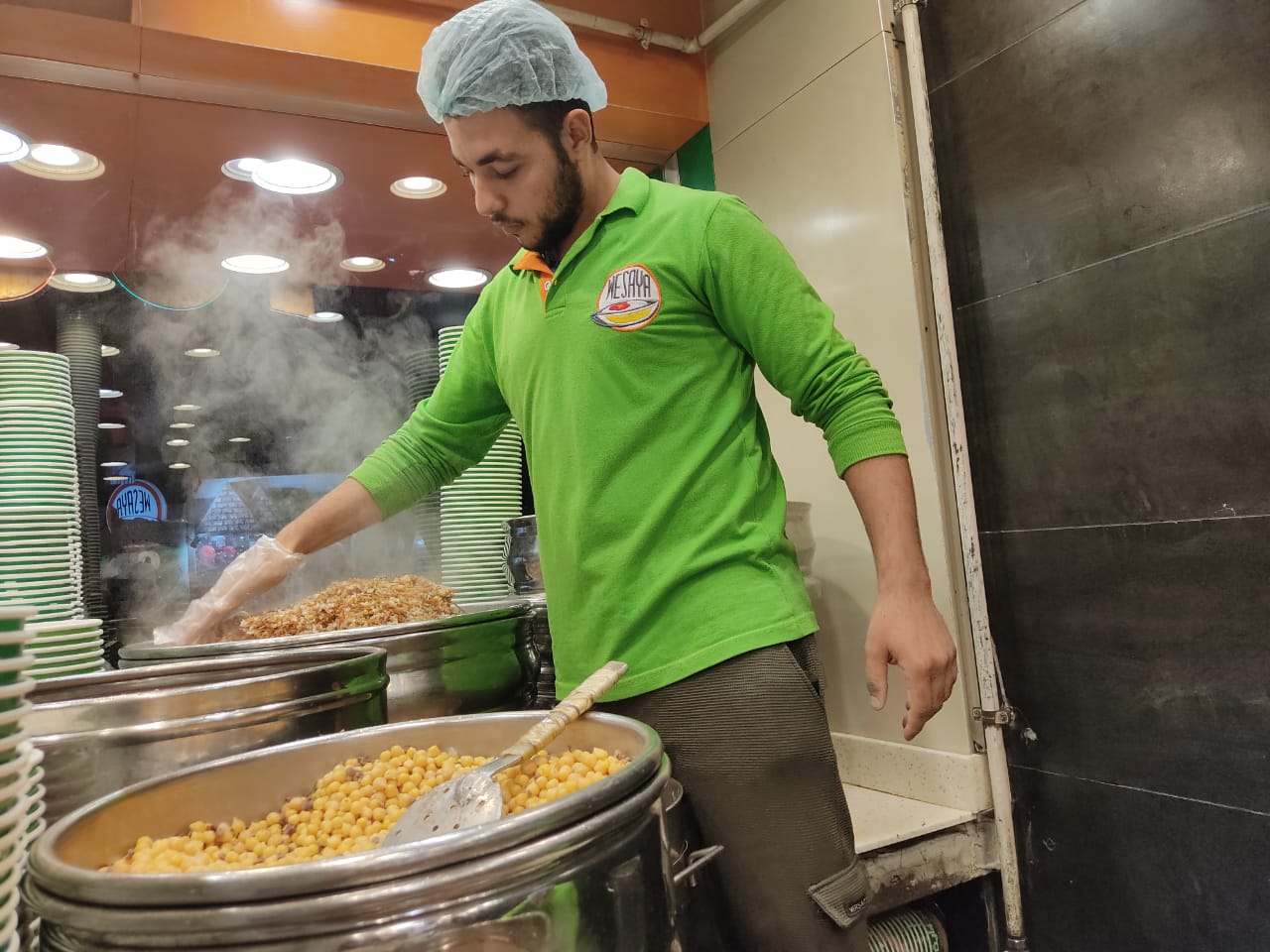 ويقول إن والدته تبدأ منذ الساعة السادسة صباحا في تجهيز كمية كبيرة من الكشري يوميا، يأخذ جزءا منها إلى منطقته. حيث يجلس من الساعة العاشرة صباحا وحتى المغرب، حتى يتمكن من بيعها. فيما تجهز كميات أخرى لوالده وأخيه، اللذين يتنقلان في شوارع المدينة بعربات أخرى مخصصة لبيع الكشري.