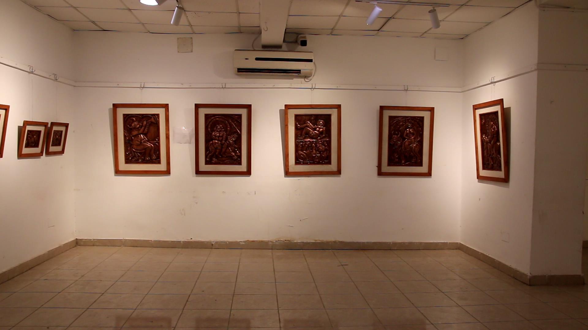يحمل المعرض الأول عنوان “المرأة والثور.. جماليات الشكل بين الواقع والرمزية”. ويضم 14 عملا فنيا نحت بارز على نحاس مطروق للفنان الدكتور صلاح شعبان. وتدور أعماله حول فلك العلاقة بين الرجل والمرأة على مر التاريخ حتى اليوم.