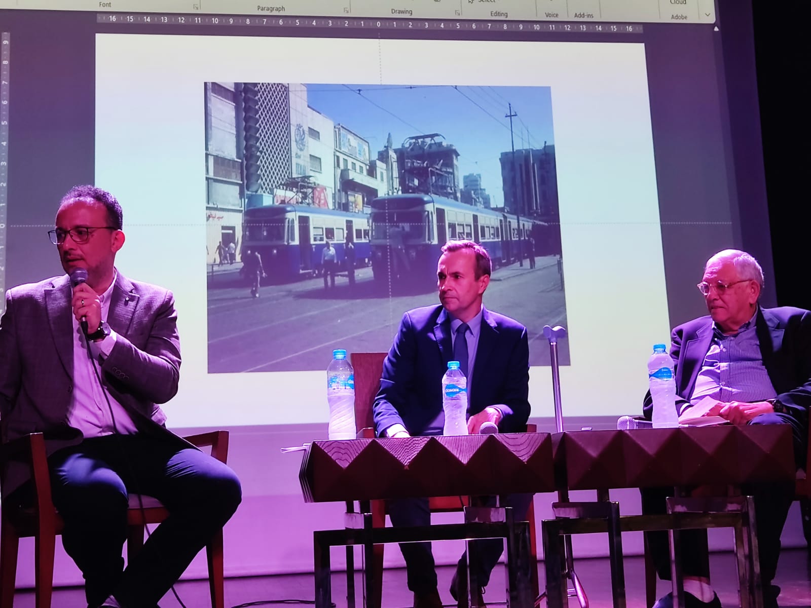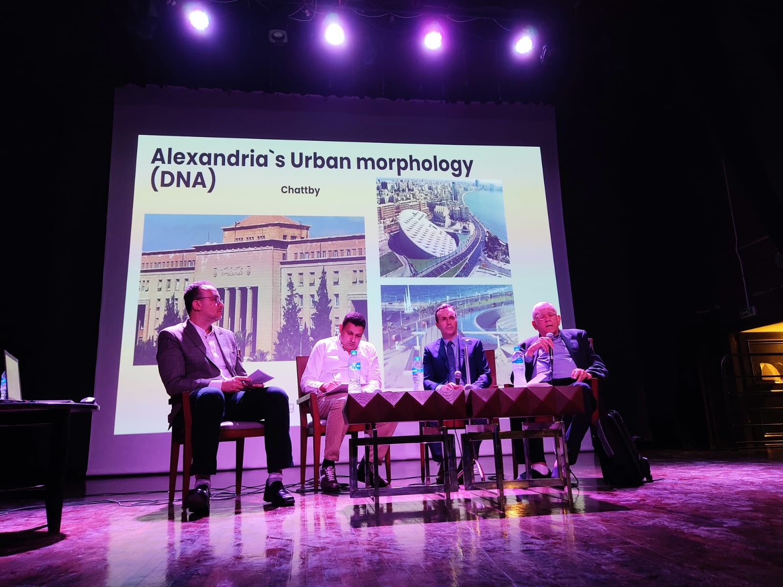 من جانبه تحدث الدكتور محمد عادل الدسوقي، رئيس قسم العمارة بالأكاديمية العربية للعلوم والتكنولوجيا- فرع العلمين، عن نشأته في وسط المدينة، وتحديدا في منطقة المنشية، وعرض صورا لمراحل نشأته المختلفة. وشكل المدينة آنذاك من مبانٍ وميدان المنشية الذي يختلف كثيرا عن شكله الحالي، مرورا بمحطة الرمل وخريطة الإسكندرية التي كانت معلقة بها. وكانت أول خريطة يراها للمدينة، والتي اختفت لاحقا في ظروف غامضة!