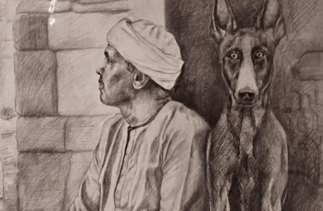 ويؤكد أنه رسم هذه اللوحات بناءً على إحساسه وشعوره بهؤلاء الحراس. ولم يكتف بذلك، بل ربط مشروع لوحاته، بالإله “نوبيس”، إله الحراسة والتحنيط عند المصريين القدماء، حيث كان يوضع رمز “نوبيس” على مقابر الملوك بعد موتهم لحراستهم من السرقات، ربطا بين الماضي بالحاضر. وأشار إلى أنه استخدم بعض الرموز للحيوانات، مثل الكلب، الذي يمثل الحراسة. وأوضح أنه استخدم أقلام الرصاص في رسم اللوحات، التي كانت الوحيدة التي تم اختيارها من قسم الجرافيك لهذا المؤتمر من بين عدد كبير من اللوحات.