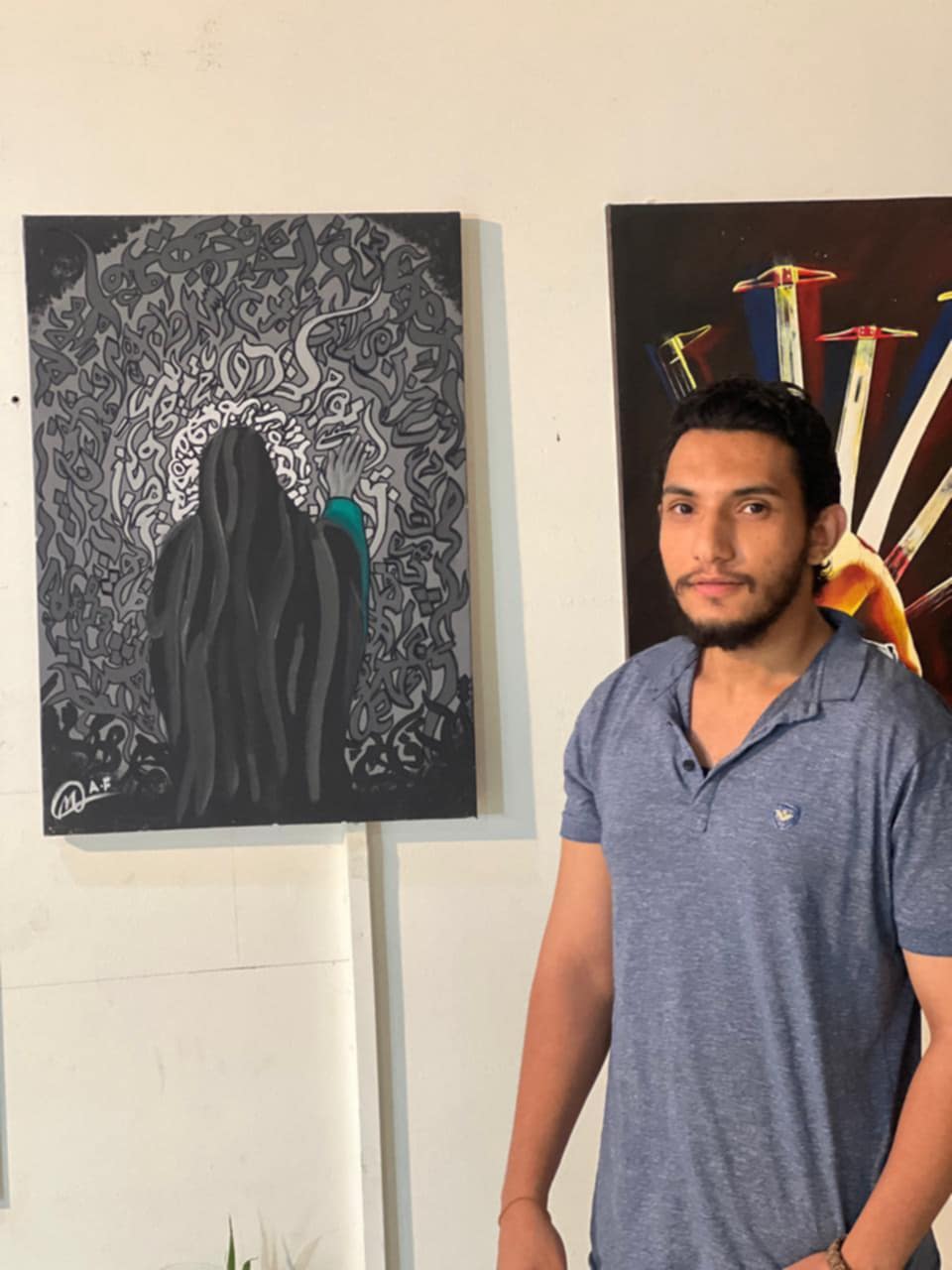 بينما شارك محمود أحمد، طالب في الفرقة الثالثة بكلية الفنون قسم ديكور، بلوحتين عن الصبر وربطها بالصوفية. إذ جسد فيها اللون الرمادي كلون أساسي يعبر عن الصبر، واللون الأخضر الذي يعبر عن الصوفية، كما أضاف الحروف العربية في اللوحة لتعبر عن توهان الشخصية البطلة. واستخدم “المنكروم” (لون واحد بدرجاته) كدلالة على السوداوية والغموض الذي ظهر في الشخصية البطلة.