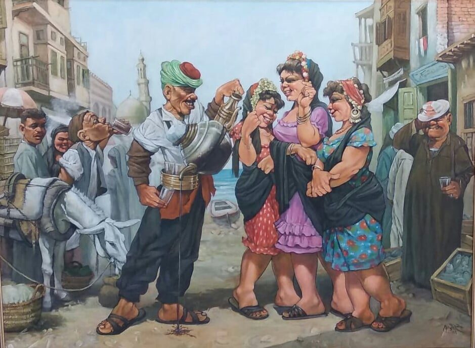 قد يراها البعض كذلك، لكني لم أتعمد ذلك، فقد ظهر هذا الأسلوب بشكل تلقائي على رسوماتي لم أخطط له، وكما ذكرت قد يكون السبب تأثرا برسومات “دومييه”، وأنا أراه أقرب للشكل الكوميدي، فأنا أحب أن أضيف على لوحاتي دائما الطابع الفكهاهي وهو الأقرب للشعب المصري، فأنا استخدم المبالغة والكوميديا في كافة لوحاتي.