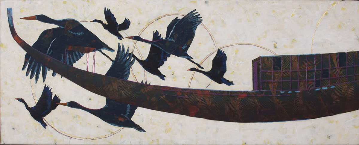كما يدعو الفنان جمال بسيوني في معرضه، إلى الانغماس في رحلة تربط بين الروايات التاريخية لكن بطريقة معاصرة. وتصور لوحاته المراكب وصفارات الإنذار، ويقدم لأول مرة أعمال منحوتة تتنوع بين المزهريات والمراكب المصرية.