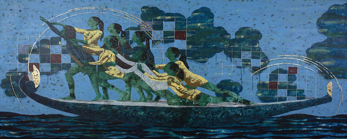 «حوريات البحر والمراكب والفينيل».. دمج الأسطورة بالتاريخ المصري في معرض فني