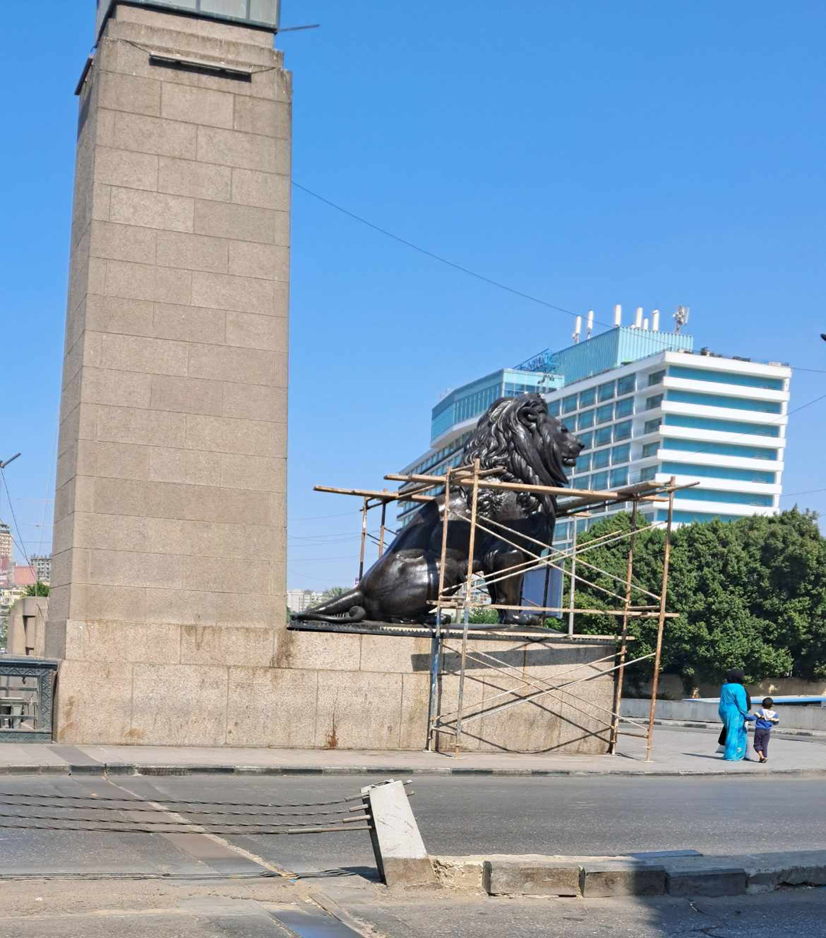 المشروع بدأناه في عام 2015 بتمويل من البنك الأهلي المصري بمبلغ ثمانية ملايين جنيه. وقد رممنا كل من كوبري قصر النيل، وكذلك تماثيل أسود قصر النيل الأربعة، وتمثال سعد باشا زغلول. استعنا بخبراء ترميم من وزارة الآثار كون هذه التماثيل كانت مسجلة ضمن الآثار، فضلًا عن خبرتهم العالية في ترميم التماثيل البرونزية. أما كوبري قصر النيل فقد أشرفت على ترميمه ولم نستعن بوزارة الآثار، كونه لم يكن مسجلًا في حوزتهم.