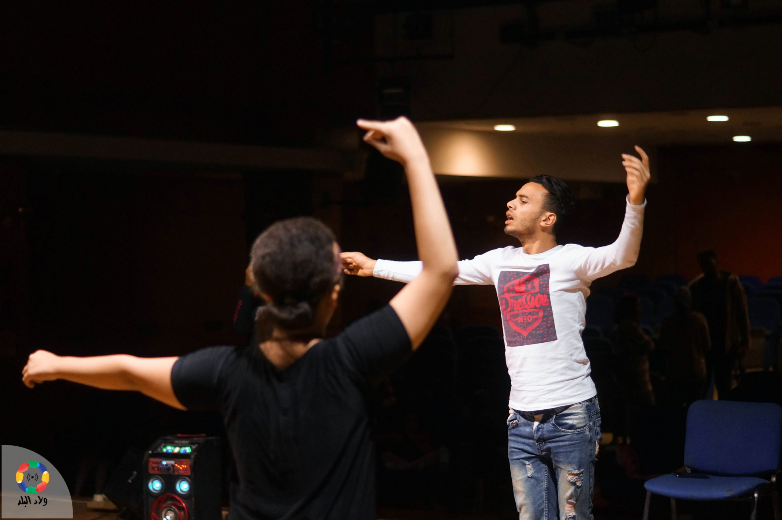 الطالبة كاندي اثناء التدريب فى احد البروفات قبل العرض