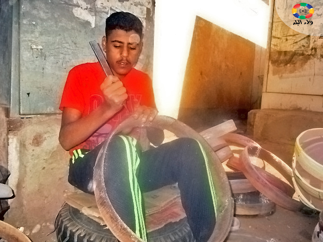 لم يكن “محمد” صاحب 16 سنة، الذي ورث مهمة صناعة الغرابيل عن أبيه وجده قد تجاوز الرابعة، ولكنه يذكر أن جده كان يسمح له أن يلهو بالقطع الخشبية وقطع السلك مقلدًا إياه في صنعته.