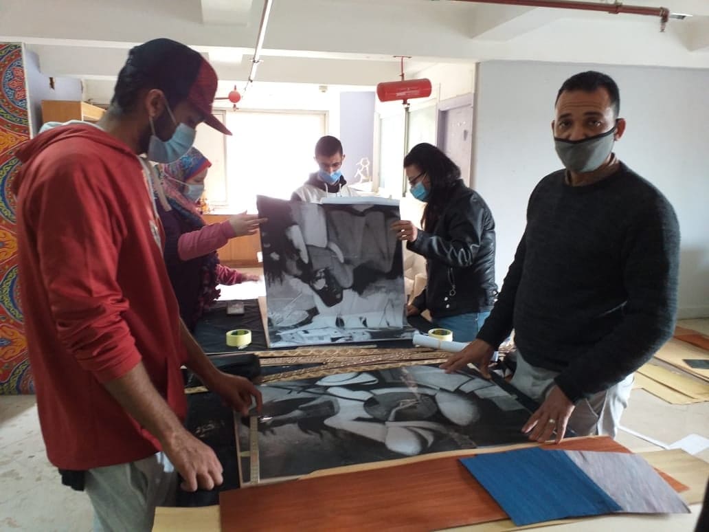 يحاكي المتدربون خلال ورشة أخرى أجدادهم الذين عاشوا على أرض الفيوم، من خلال إعادة رسم بورتريهات من وحي بورتريهات الفيوم القديمة وباستخدام نفس الخامات.