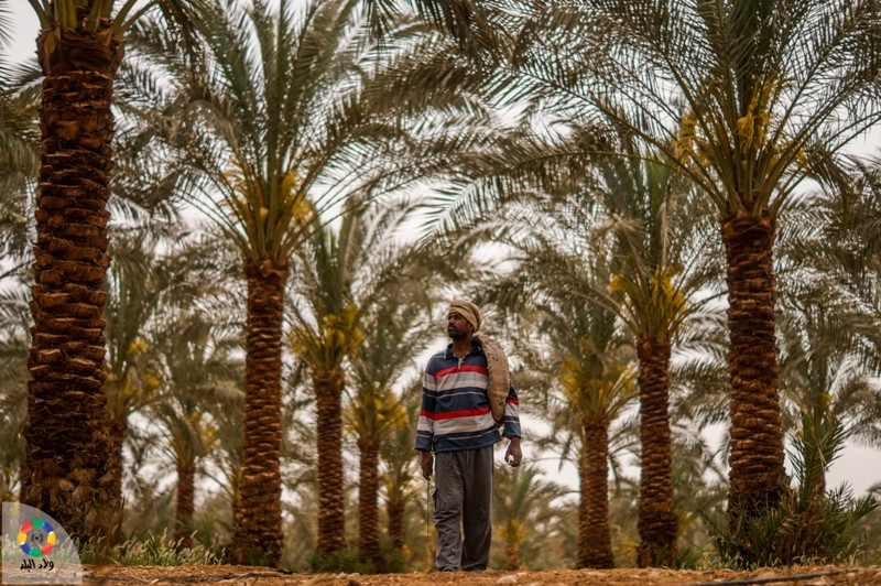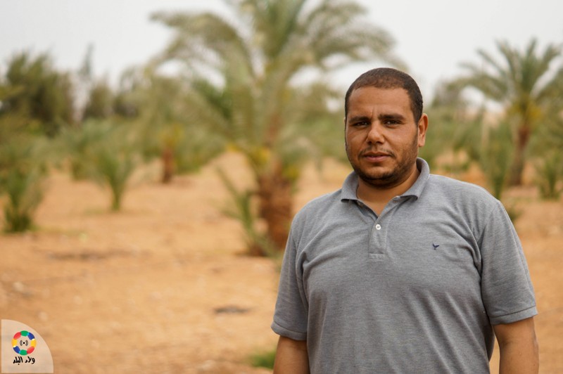 معتمد سعفان في مزرعة النخيل التي يعمل بها – تصوير: أحمد دريم