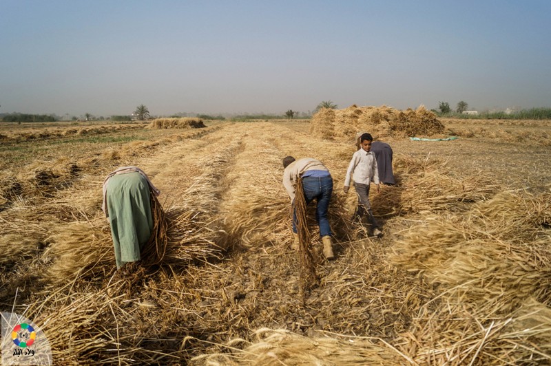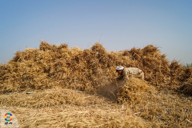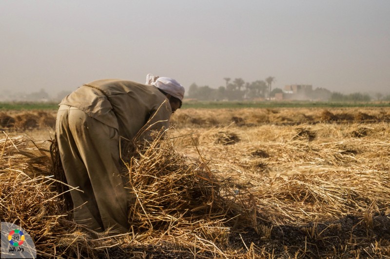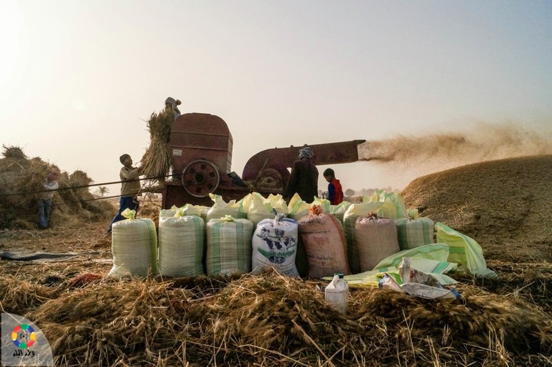 تابع العجوز: أن عملية حصاد القمح في عصرنا هذا تبدأ بحصاد أعواد القمح كاملة باستخدام المناجل، ثم تترك علي الأرض لعدة أيام، بعدها يتم تربيط القش إلي أكوام باستخدام حبال الليف المصنوعة من النخيل، وبعدها بيوم يتم “تجرين” تلك الأكوام إلي كوم كبير يطلق عليه “الجرن”، ومن ثم البدء في الدراس بواسطة “الدرّاسة” التي تفصل الغلال عن التبن ومن ثم نقل المحصول والتبن الذي يستخدم للماشية إلى المنزل.