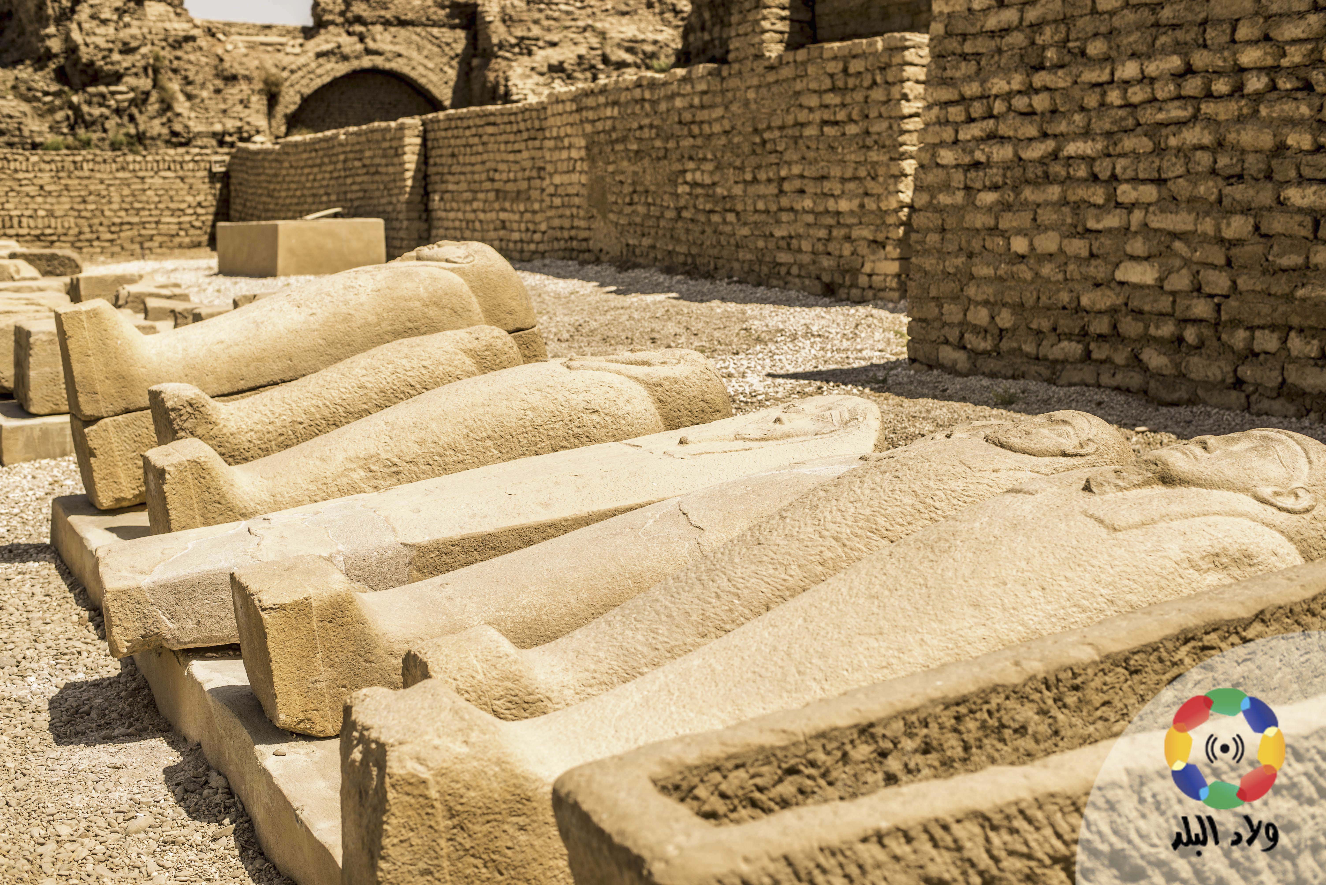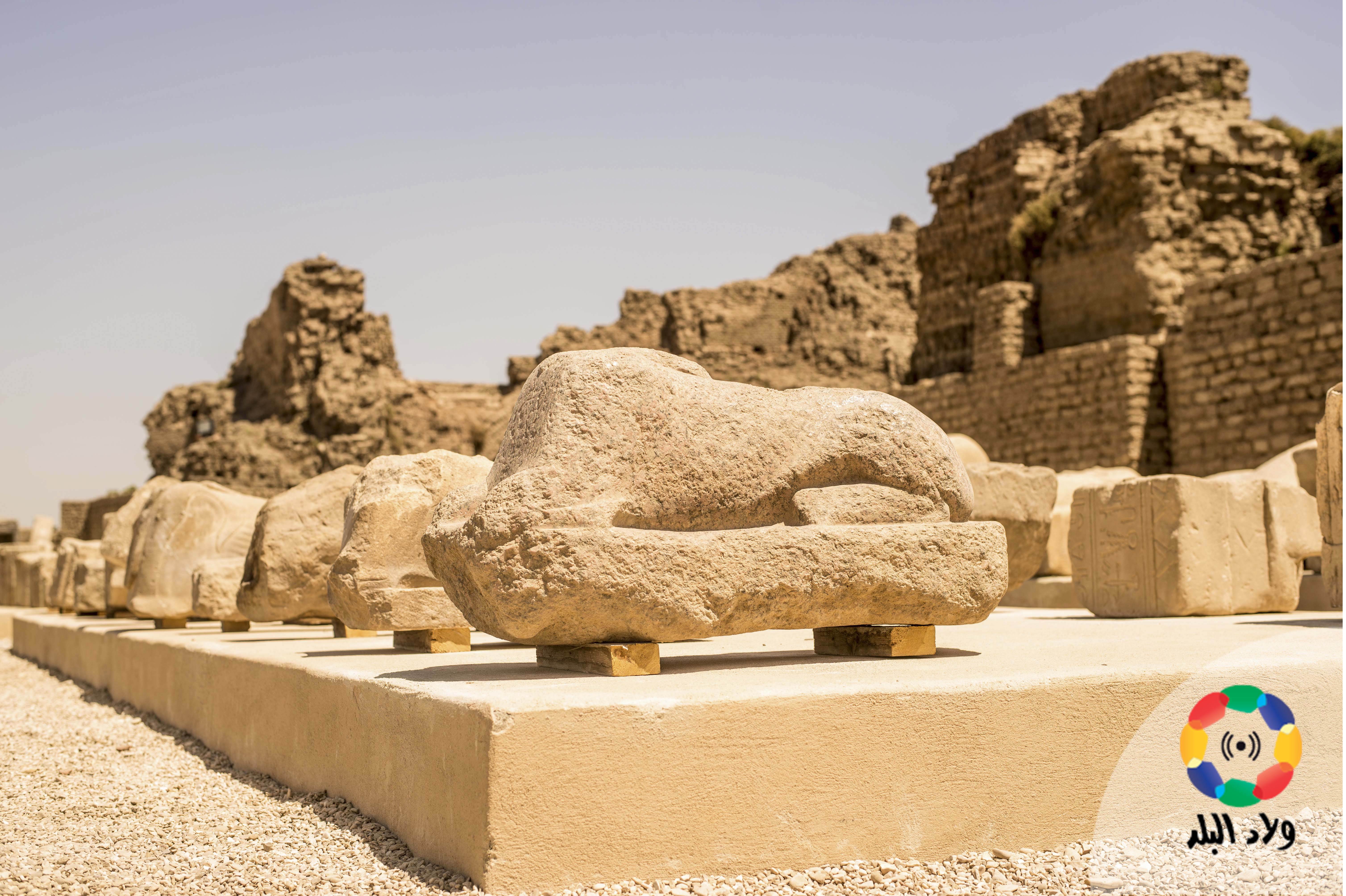 ويضم المتحف المفتوح أيضًا توابيت حجرية ضخمة من حجر الجرانيت الوردي الذي يرجع إلى العصر اليوناني الروماني، وعليه زخارف رومانية جميلة مثل زهرة اللوتس وعقود الورود المزخرفة، ومعصرة الزيت، وأحجار بقايا تماثيل، والأطباق وبقايا من سور دولة قديمة، ومطاحن المدينة السكنية، والكهنة والأفراد القائمين على خدمة المعبد قديمًا، وهي مكتشفات كانت ضمن حفائر بعثات فرنسية وأمريكية منذ عامين.