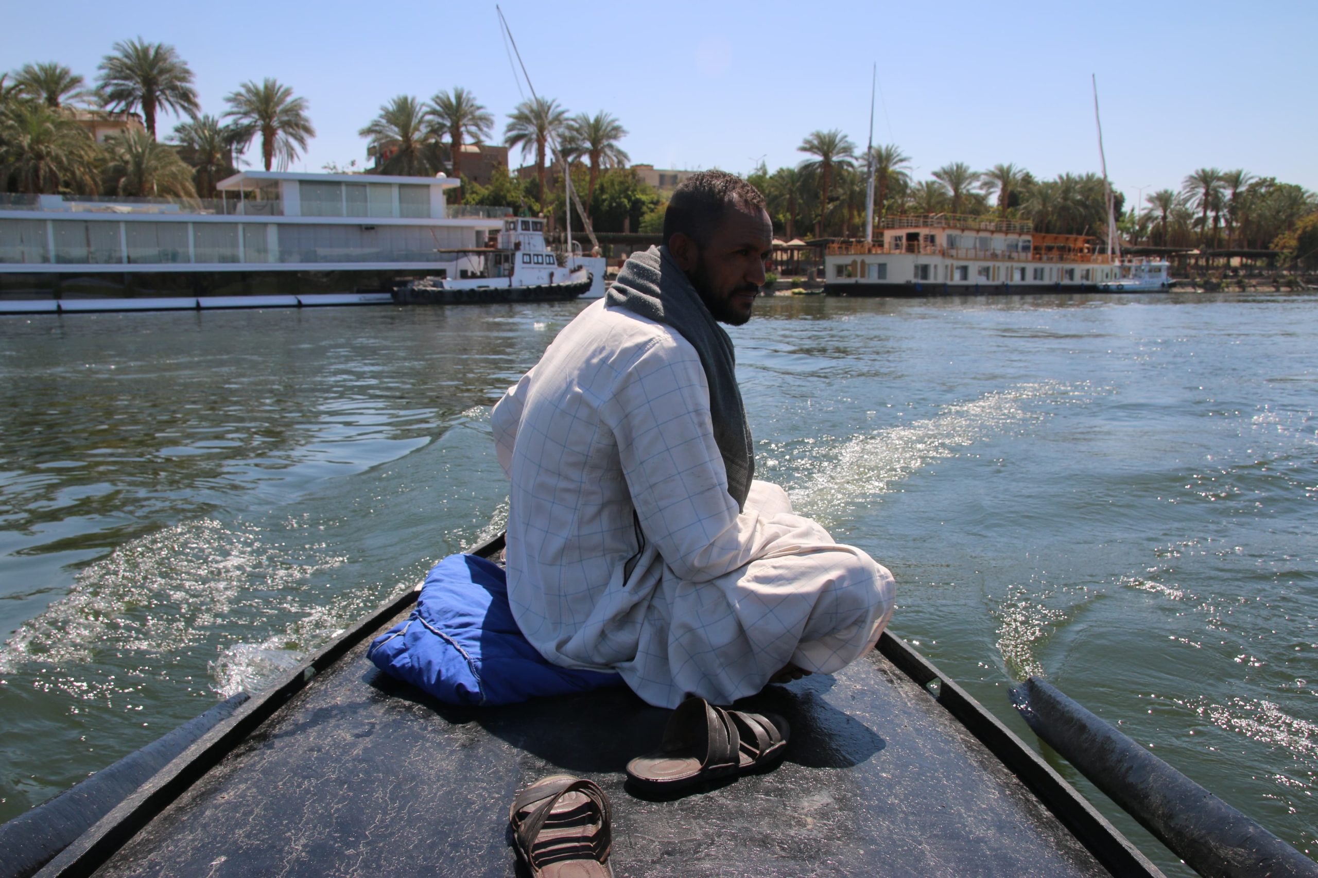 “ماشية بالستر معانا، مالهاش حسابات، ممكن أقعد في الميه 4 ساعات وممكن 12ساعة. وممكن يطلع سمك وممكن لأ”. هكذا بدأ حديثه أحمد سيد أحمد، في الثلاثينات من العمر، ويعمل في مهنة الصيد منذ قرابة 22عامًا. ولديه ثلاثة أطفال ينفق عليهم من العمل في صيد السمك بمحافظة الأقصر. وفي حال توفرت فرصة عمل أخرى يعمل بها، لكن الصيد يظل مهنته الأساسية.