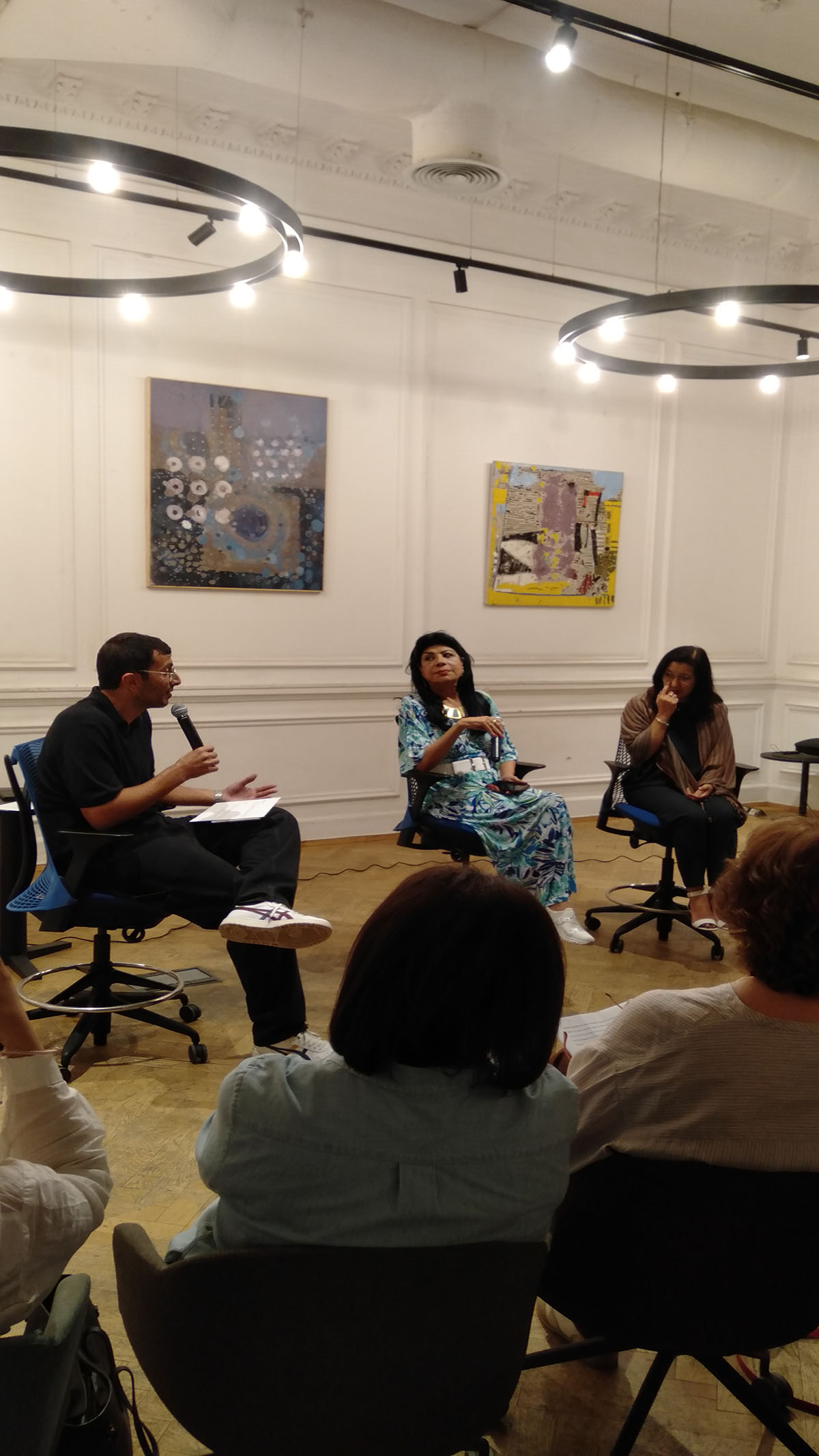 أدارت الفنانة هند صبري جلسة الحوار الأولى إلى جانب الشاعر سالم مصالحة، حيث ناقشا قضية الاستدامة وعدم المساواة بين الجنسين في مواجهة التغير المناخي، مؤكدة على دور الفن والسينما في تعزيز الوعي البيئي.