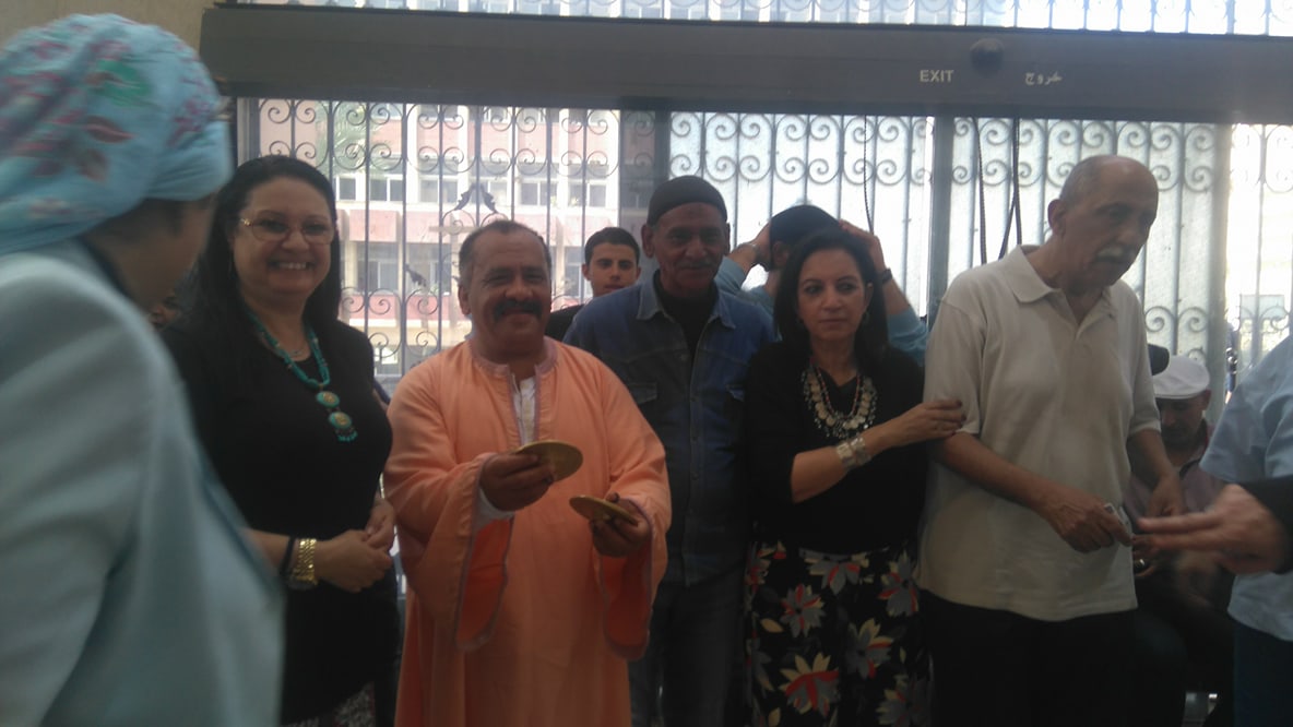من محافظة سوهاج جاء رجال تضفي أزيائهم التي يرتدونها هيبة، وتضيف مسكتهم للعصا وضربها على الأرض خوفًا وشوقًا للعروض التي بدأت تقدمها فرقة “التحطيب”، والتي يتقدمها الرئيس صابري محمود، مؤسس المركز الدولي لتعليم فنون التحطيب.