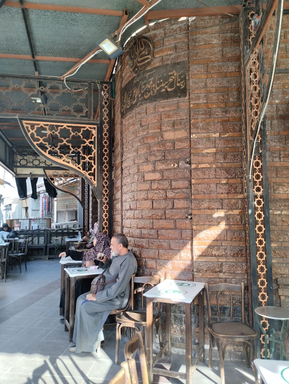 راقبت الجدران الصامدة وبها تشققات يخفيها الطلاء، والسور الحديدي الذي يلفها ويبرق متأثرًا بعوامل الزمن. تأملت المشربيات الطويلة، والصور الفوتوغرافية المعلقة، والآيات المكتوبة بالخط العثماني والأذكار. دققتُ أكثر في وجوه القهوة المختلفة، كراسيها، طاولاتها، ووجوه الناس وأُنسهم!